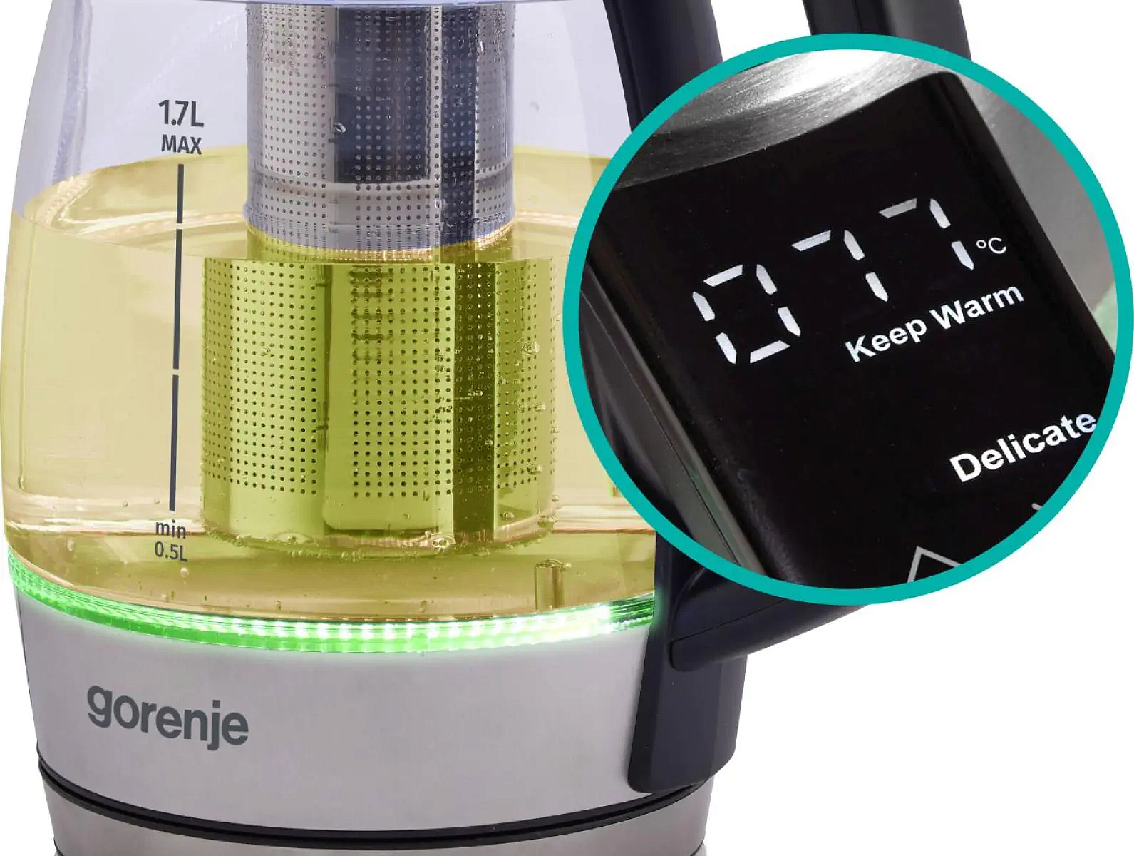 Электрический чайник Gorenje K17TRGT — это удачное сочетание практичности и современного дизайна. Модель изготовлена из качественной нержавеющей стали и закалённого стекла, что гарантирует долговечность использования и презентабельный внешний вид. Серебристый корпус изделия переливается на свету, подчёркивая его элегантность и благородство.