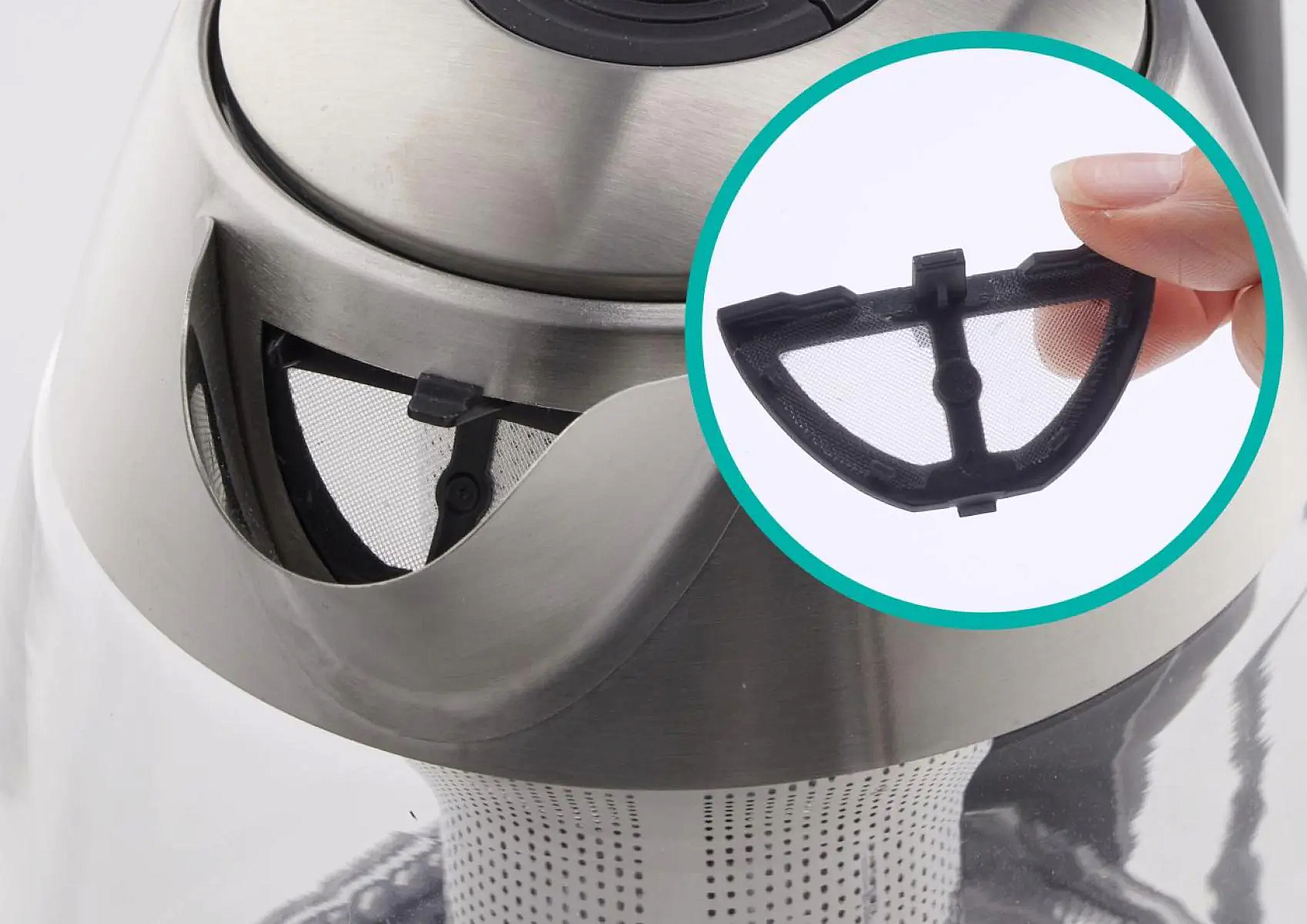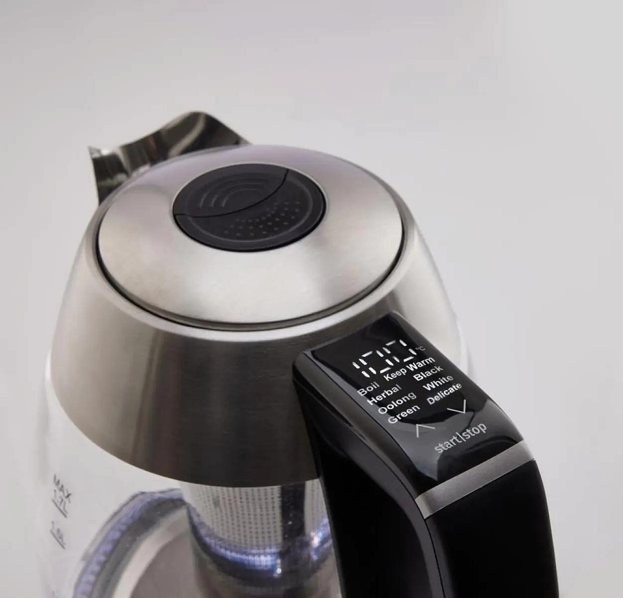 Фильтр для воды, встроенный в носик чайника, можно легко извлечь и очистить, что положительно влияет на простоту ухода за устройством. Мощность прибора составляет 2200 Вт, что позволяет быстро нагреть воду до нужной температуры.