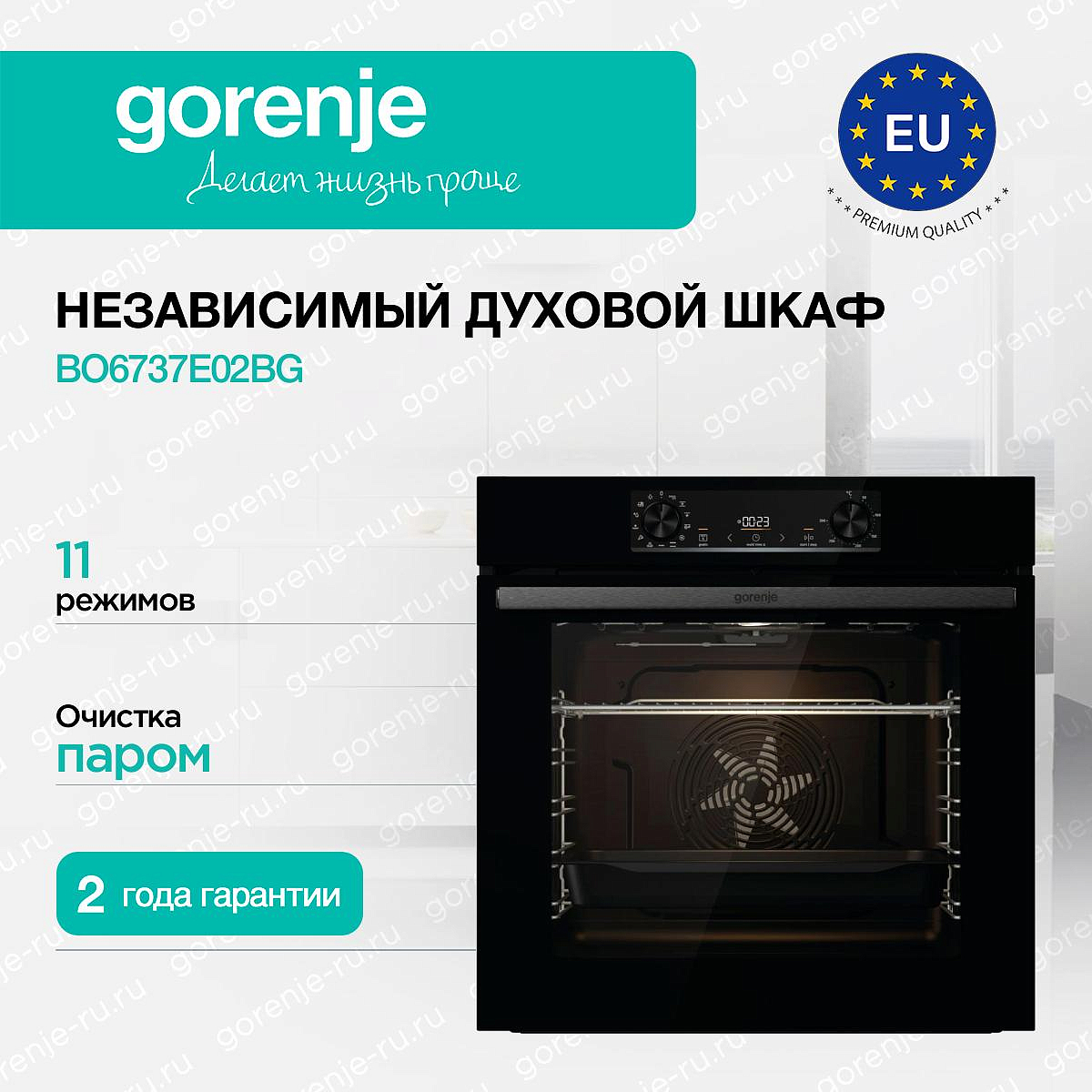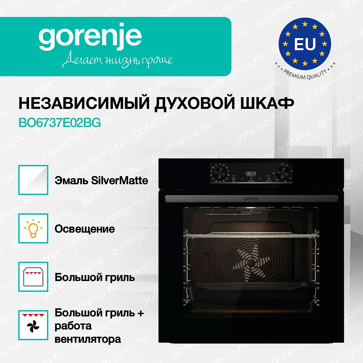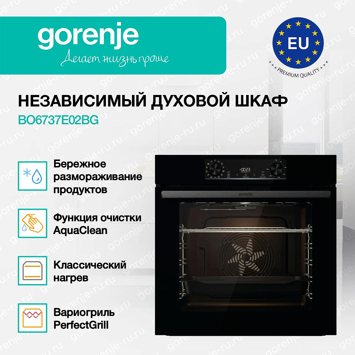 ** Все информационные материалы, представленные на Сайте, носят справочный характер и не могут в полной мере передавать достоверную информацию о свойствах, комплектации и характеристиках товара, включая цвета, размеры и формы. Фирма-производитель оставляет за собой право на внесение изменений в конструкцию, дизайн и комплектацию товара без предварительного уведомления. Перед оформлением Заказа Покупатель должен обратиться к Продавцу для уточнения свойств и характеристик Товара. Подробная информация о товаре указывается в инструкции и на упаковке товара. Используемое название в России: Горенье BO6737E02BG