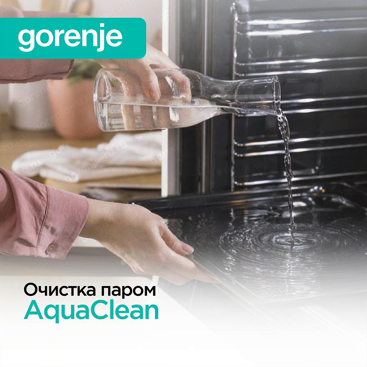 Функция AquaClean является очисткой при помощи пара. Её можно активировать только после того, как духовой шкаф полностью остыл. Для выполнения программы хватит всего полчаса. В течение этого времени разогретый пар воздействует на остатки пищи и жировых отложениях на покрытых эмалью стенках. Загрязнения размокают, после чего их можно удалить влажной тканью.