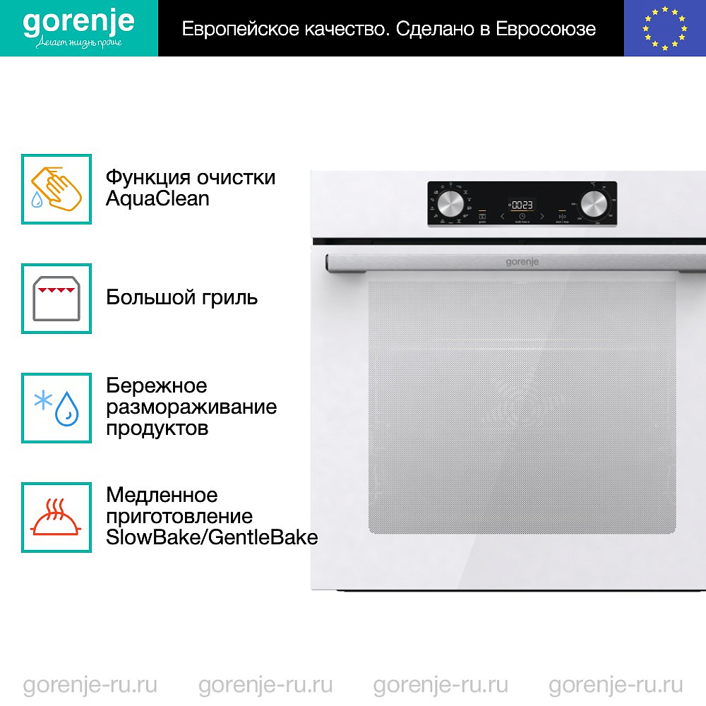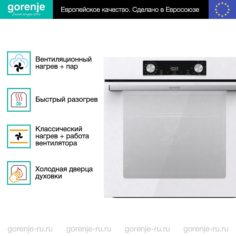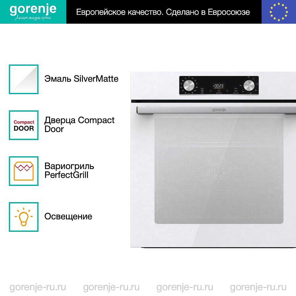 ** Все информационные материалы, представленные на Сайте, носят справочный характер и не могут в полной мере передавать достоверную информацию о свойствах, комплектации и характеристиках товара, включая цвета, размеры и формы. Фирма-производитель оставляет за собой право на внесение изменений в конструкцию, дизайн и комплектацию товара без предварительного уведомления. Перед оформлением Заказа Покупатель должен обратиться к Продавцу для уточнения свойств и характеристик Товара. Подробная информация о товаре указывается в инструкции и на упаковке товара. Используемое название в России: Горенье BOS6737E13WG