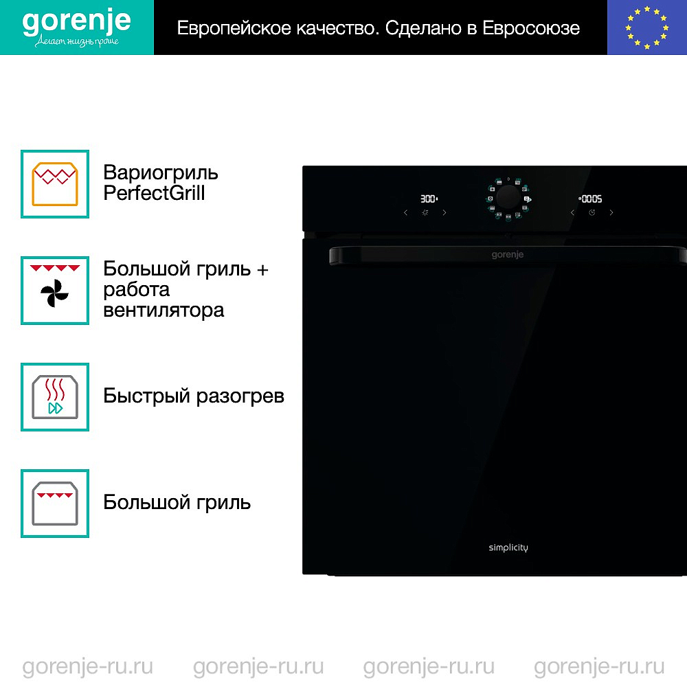 ** Все информационные материалы, представленные на Сайте, носят справочный характер и не могут в полной мере передавать достоверную информацию о свойствах, комплектации и характеристиках товара, включая цвета, размеры и формы. Фирма-производитель оставляет за собой право на внесение изменений в конструкцию, дизайн и комплектацию товара без предварительного уведомления. Перед оформлением Заказа Покупатель должен обратиться к Продавцу для уточнения свойств и характеристик Товара. Подробная информация о товаре указывается в инструкции и на упаковке товара. Используемое название в России: Горенье BOS6737SYB