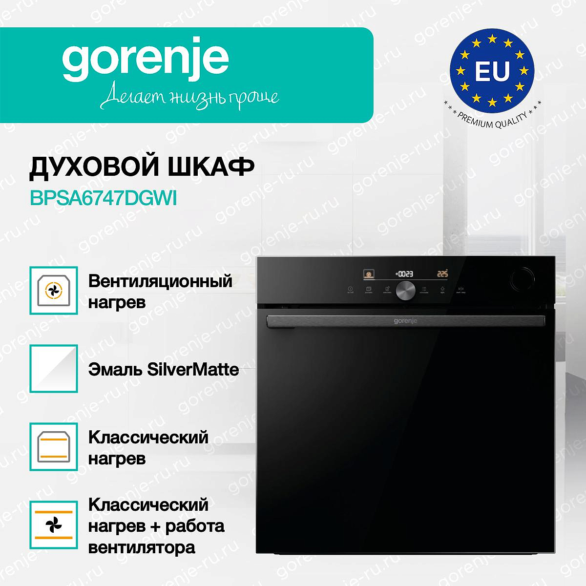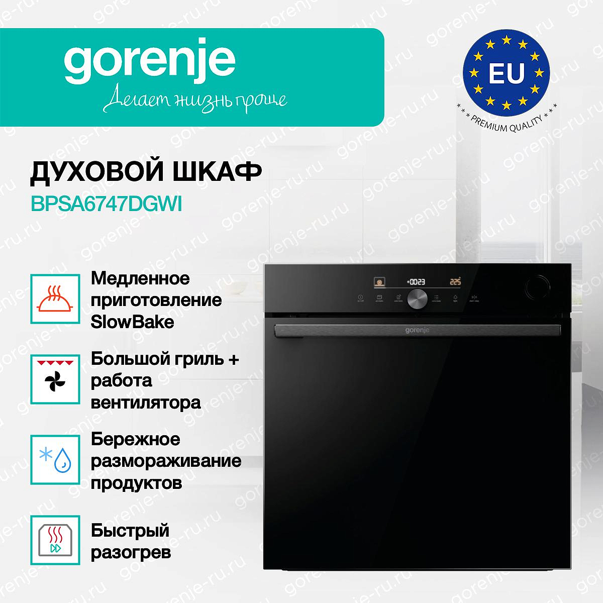 Духовой шкаф Gorenje BPSA6747DGWI — это современное, безопасное и энергоэффективное решение для любой кухни. Благодаря вместительной камере, богатому набору режимов, продуманным функциям и высокому уровню безопасности, он станет незаменимым помощником как для начинающих, так и для опытных кулинаров.
