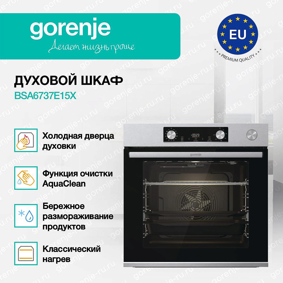 ** Все информационные материалы, представленные на Сайте, носят справочный характер и не могут в полной мере передавать достоверную информацию о свойствах, комплектации и характеристиках товара, включая цвета, размеры и формы. Фирма-производитель оставляет за собой право на внесение изменений в конструкцию, дизайн и комплектацию товара без предварительного уведомления. Перед оформлением Заказа Покупатель должен обратиться к Продавцу для уточнения свойств и характеристик Товара. Подробная информация о товаре указывается в инструкции и на упаковке товара. Используемое название в России: Горенье BSA6737E15X