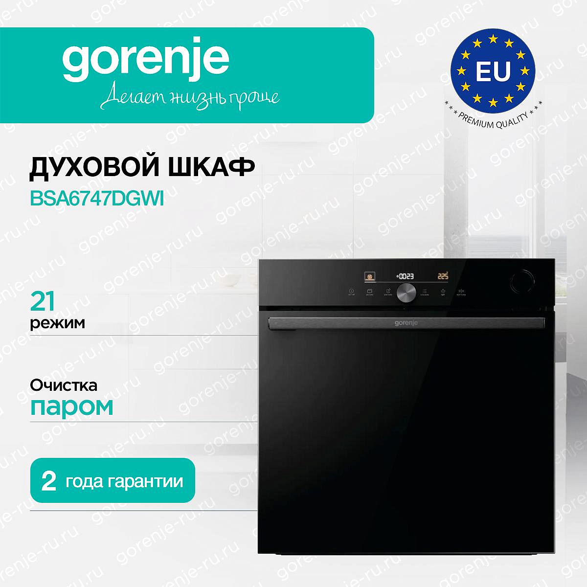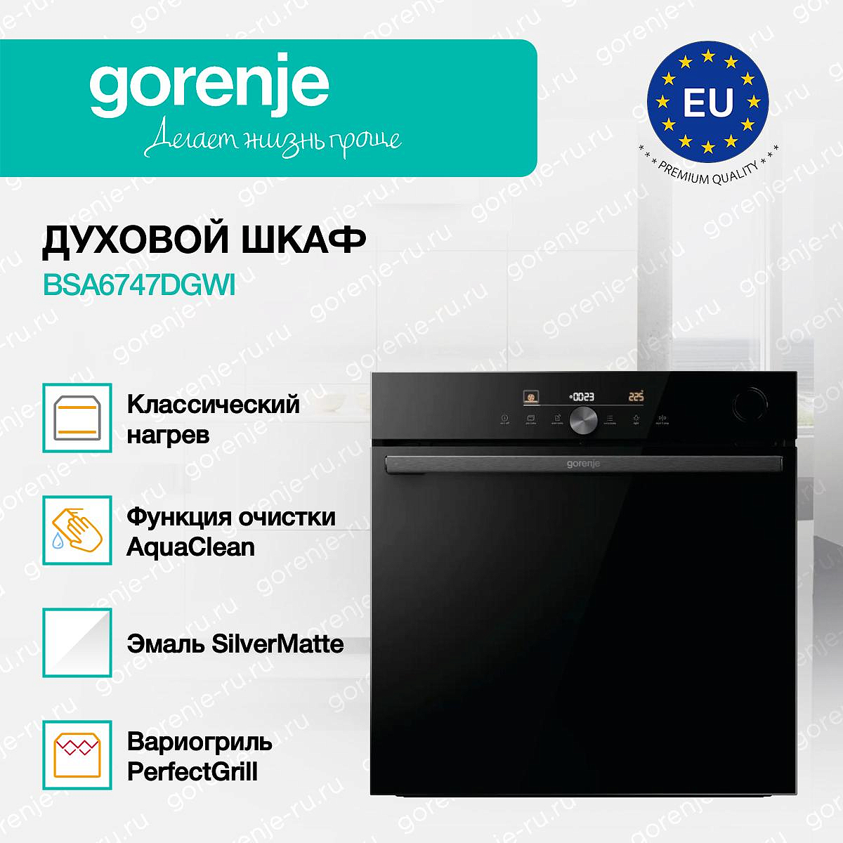 ** Все информационные материалы, представленные на Сайте, носят справочный характер и не могут в полной мере передавать достоверную информацию о свойствах, комплектации и характеристиках товара, включая цвета, размеры и формы. Фирма-производитель оставляет за собой право на внесение изменений в конструкцию, дизайн и комплектацию товара без предварительного уведомления. Перед оформлением Заказа Покупатель должен обратиться к Продавцу для уточнения свойств и характеристик Товара. Подробная информация о товаре указывается в инструкции и на упаковке товара. Используемое название в России: Горенье BSA6747DGWI