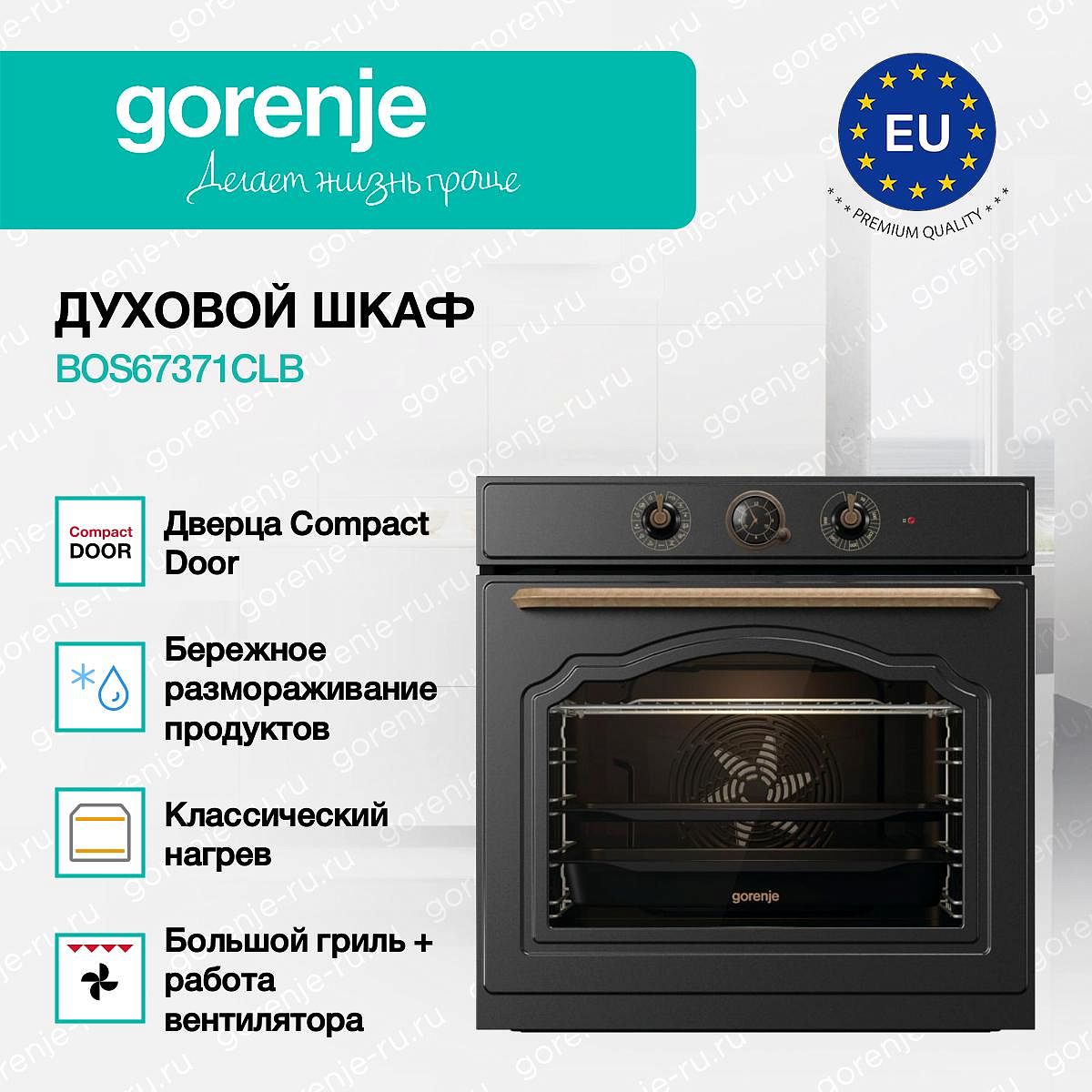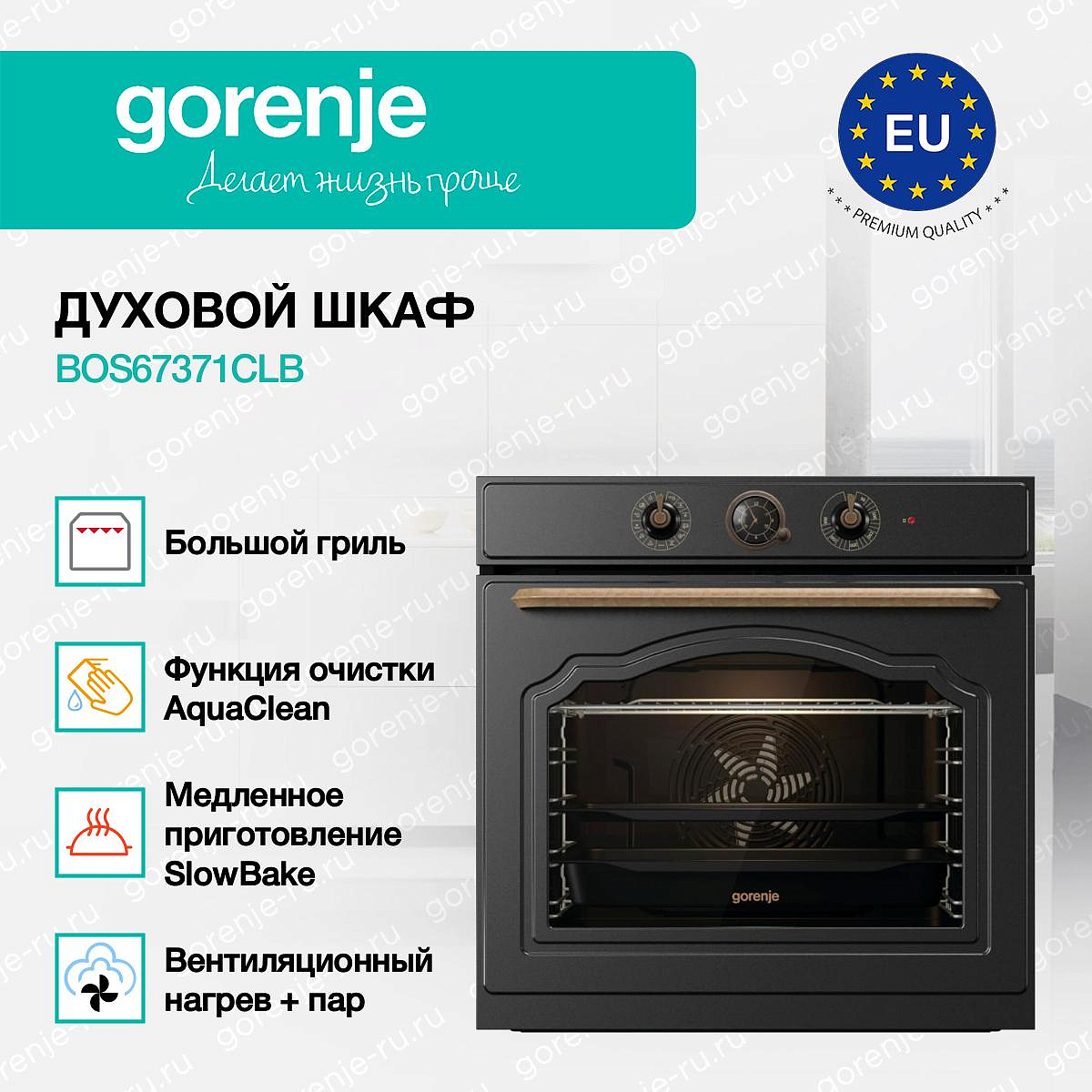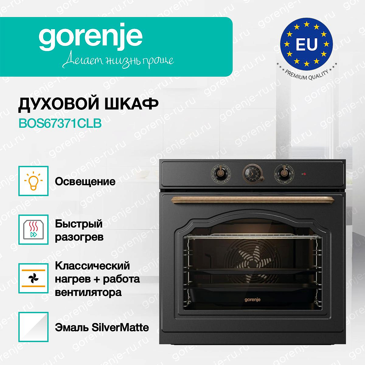 ** Все информационные материалы, представленные на Сайте, носят справочный характер и не могут в полной мере передавать достоверную информацию о свойствах, комплектации и характеристиках товара, включая цвета, размеры и формы. Фирма-производитель оставляет за собой право на внесение изменений в конструкцию, дизайн и комплектацию товара без предварительного уведомления. Перед оформлением Заказа Покупатель должен обратиться к Продавцу для уточнения свойств и характеристик Товара. Подробная информация о товаре указывается в инструкции и на упаковке товара. Используемое название в России: Горенье BOS67371CLB