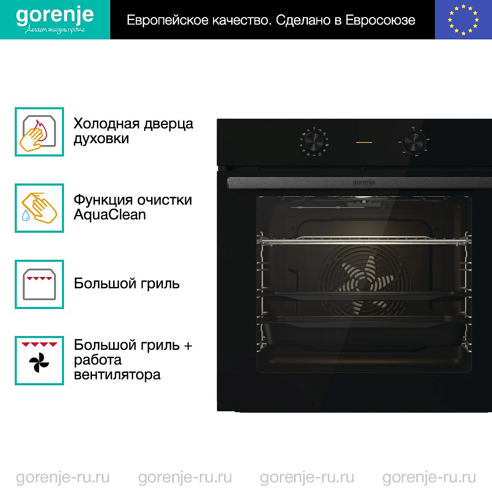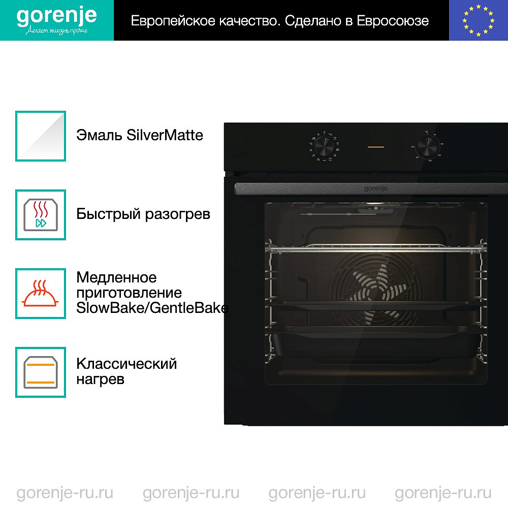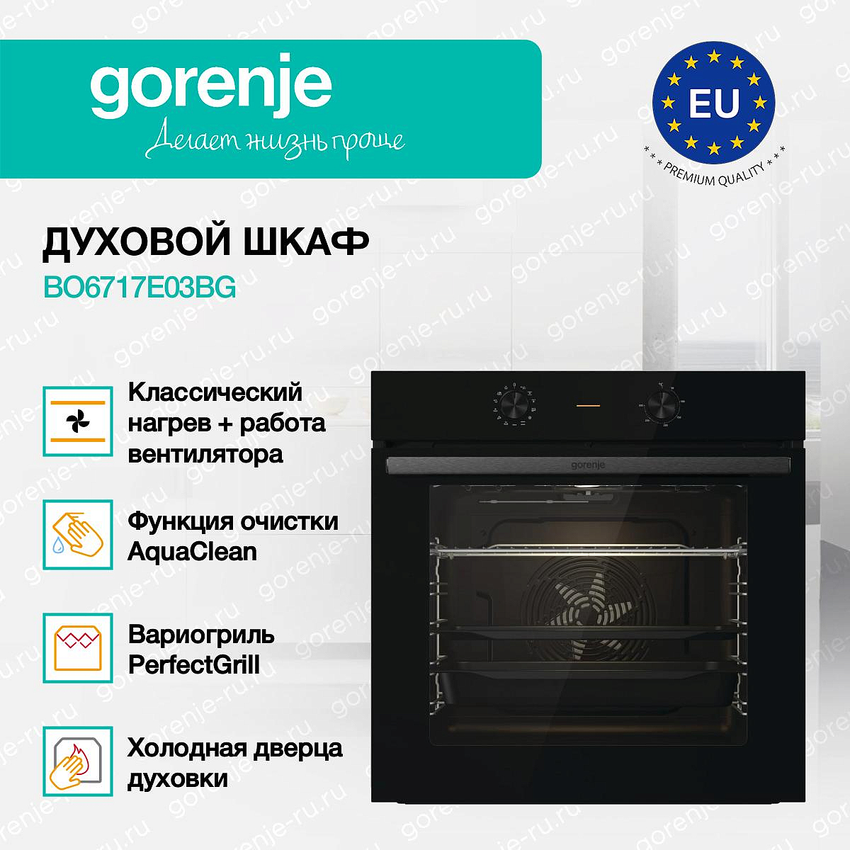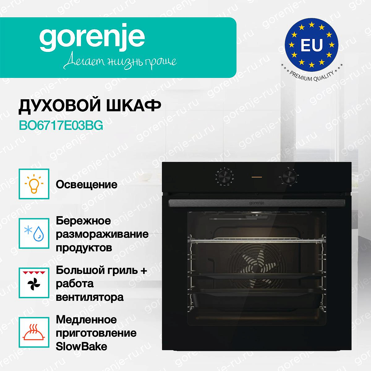 ** Все информационные материалы, представленные на Сайте, носят справочный характер и не могут в полной мере передавать достоверную информацию о свойствах, комплектации и характеристиках товара, включая цвета, размеры и формы. Фирма-производитель оставляет за собой право на внесение изменений в конструкцию, дизайн и комплектацию товара без предварительного уведомления. Перед оформлением Заказа Покупатель должен обратиться к Продавцу для уточнения свойств и характеристик Товара. Подробная информация о товаре указывается в инструкции и на упаковке товара. Используемое название в России: Горенье BO6717E03BG