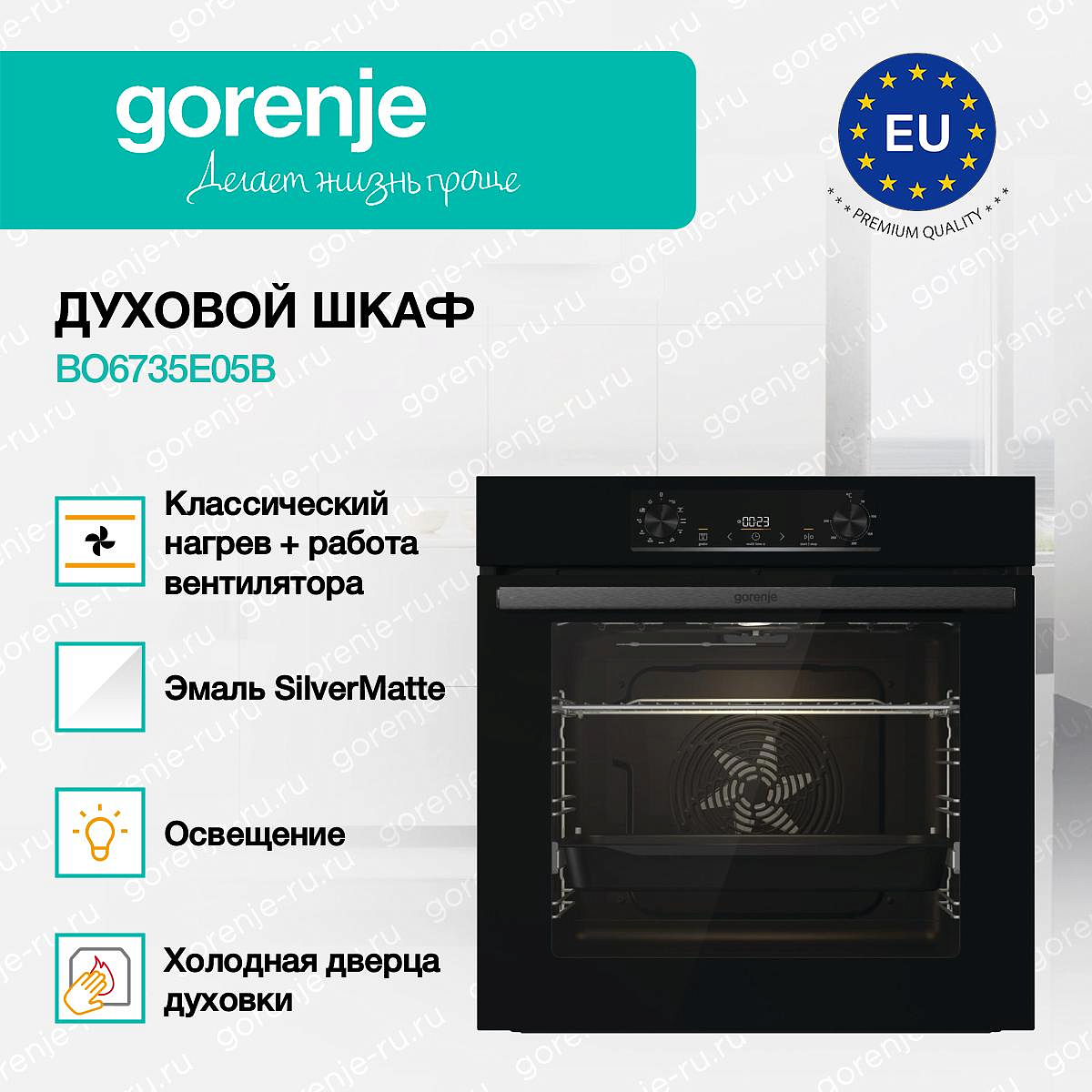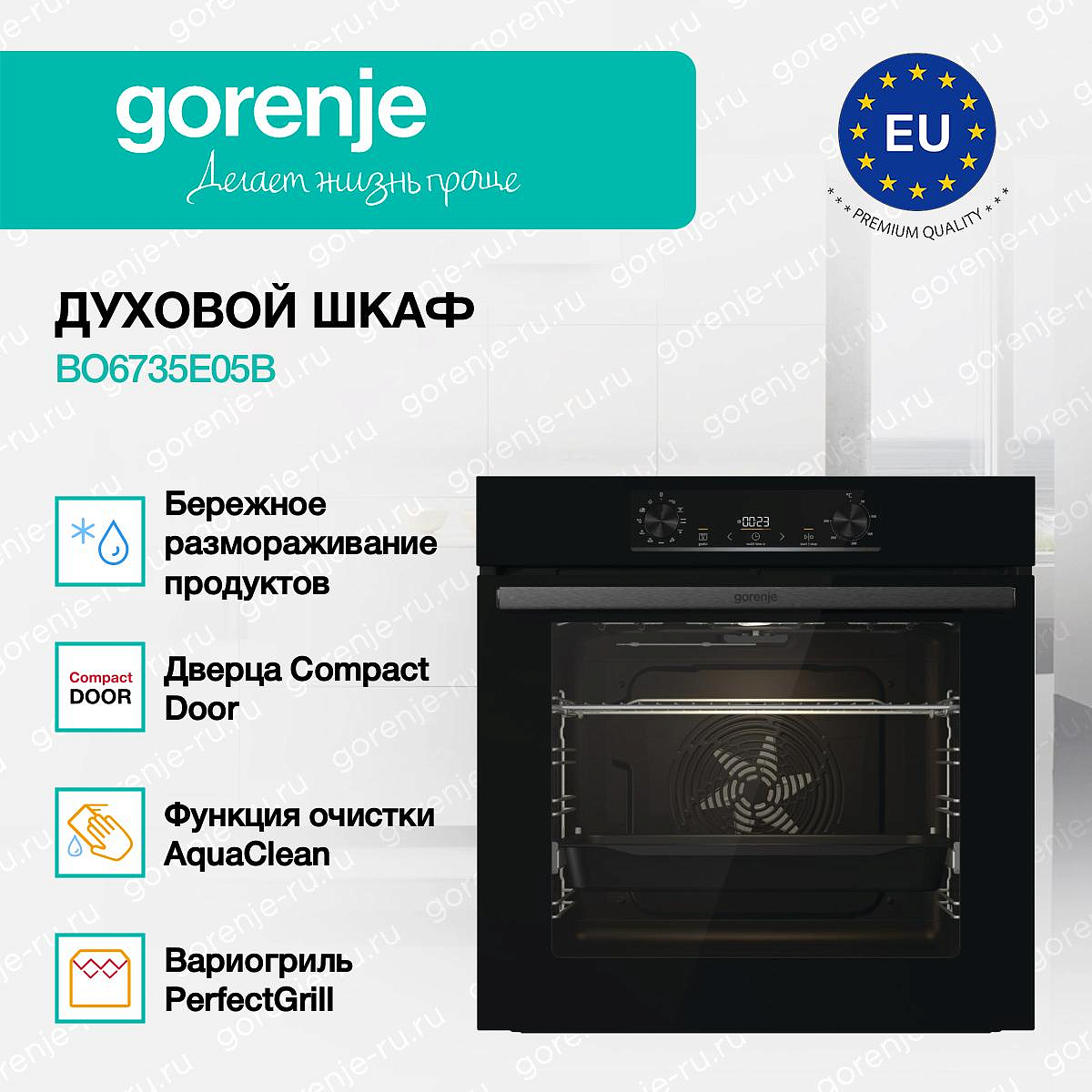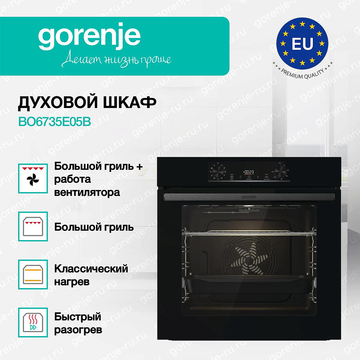 ** Все информационные материалы, представленные на Сайте, носят справочный характер и не могут в полной мере передавать достоверную информацию о свойствах, комплектации и характеристиках товара, включая цвета, размеры и формы. Фирма-производитель оставляет за собой право на внесение изменений в конструкцию, дизайн и комплектацию товара без предварительного уведомления. Перед оформлением Заказа Покупатель должен обратиться к Продавцу для уточнения свойств и характеристик Товара. Подробная информация о товаре указывается в инструкции и на упаковке товара. Используемое название в России: Горенье BO6735E05B