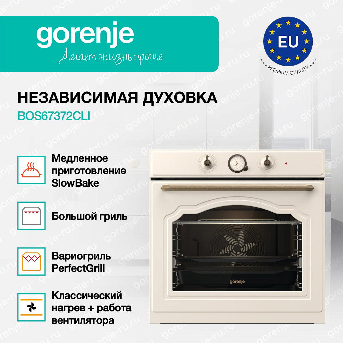 ** Все информационные материалы, представленные на Сайте, носят справочный характер и не могут в полной мере передавать достоверную информацию о свойствах, комплектации и характеристиках товара, включая цвета, размеры и формы. Фирма-производитель оставляет за собой право на внесение изменений в конструкцию, дизайн и комплектацию товара без предварительного уведомления. Перед оформлением Заказа Покупатель должен обратиться к Продавцу для уточнения свойств и характеристик Товара. Подробная информация о товаре указывается в инструкции и на упаковке товара. Используемое название в России: Горенье BOS67372CLI