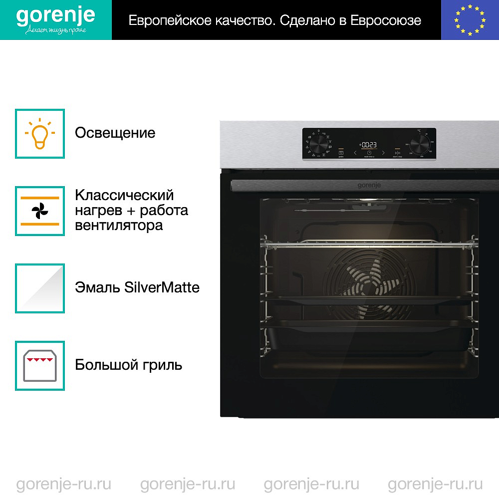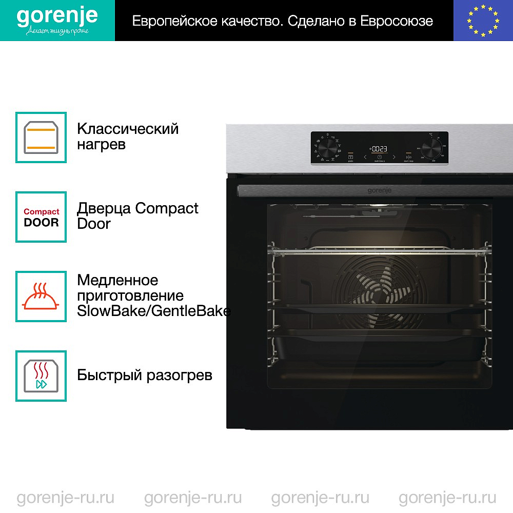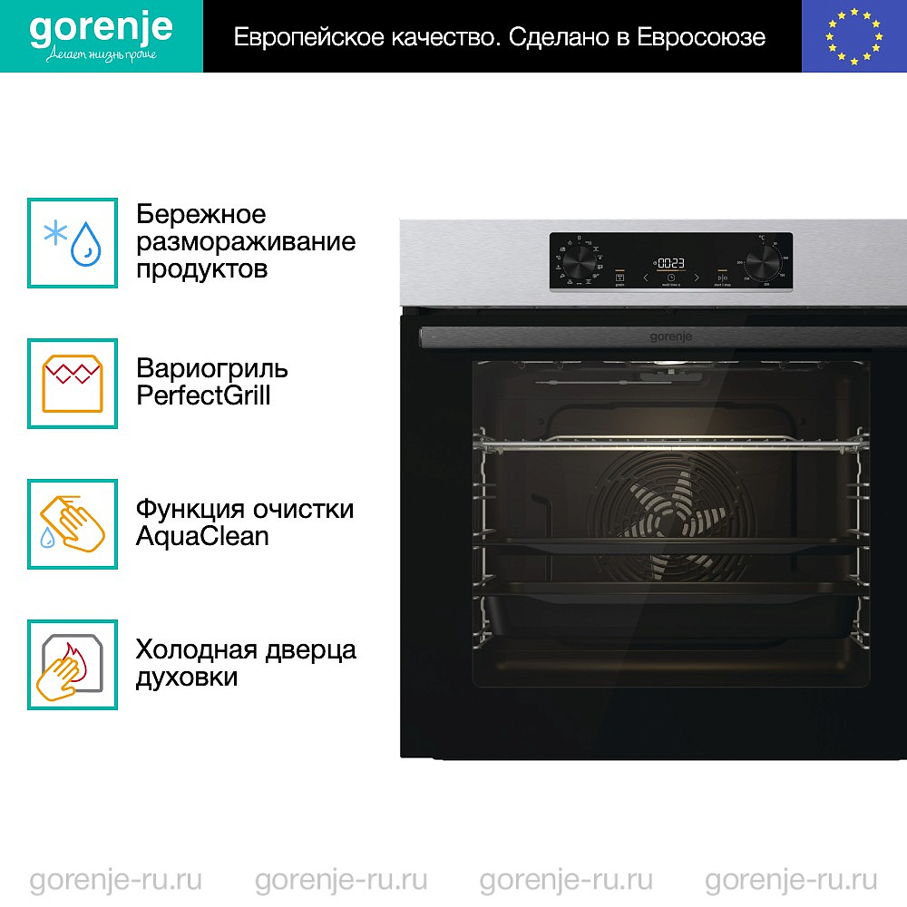 ** Все информационные материалы, представленные на Сайте, носят справочный характер и не могут в полной мере передавать достоверную информацию о свойствах, комплектации и характеристиках товара, включая цвета, размеры и формы. Фирма-производитель оставляет за собой право на внесение изменений в конструкцию, дизайн и комплектацию товара без предварительного уведомления. Перед оформлением Заказа Покупатель должен обратиться к Продавцу для уточнения свойств и характеристик Товара. Подробная информация о товаре указывается в инструкции и на упаковке товара. Используемое название в России: Горенье BOSB6737E03X