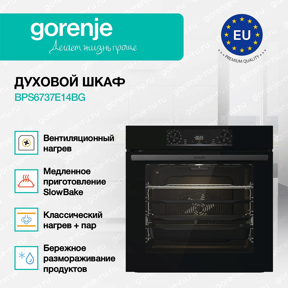 ** Все информационные материалы, представленные на Сайте, носят справочный характер и не могут в полной мере передавать достоверную информацию о свойствах, комплектации и характеристиках товара, включая цвета, размеры и формы. Фирма-производитель оставляет за собой право на внесение изменений в конструкцию, дизайн и комплектацию товара без предварительного уведомления. Перед оформлением Заказа Покупатель должен обратиться к Продавцу для уточнения свойств и характеристик Товара. Подробная информация о товаре указывается в инструкции и на упаковке товара. Используемое название в России: Горенье BPS6737E14BG