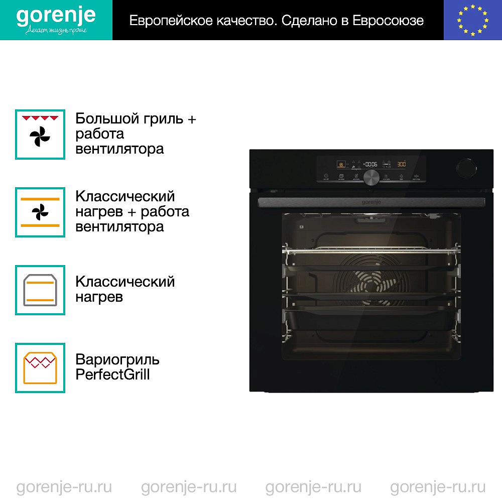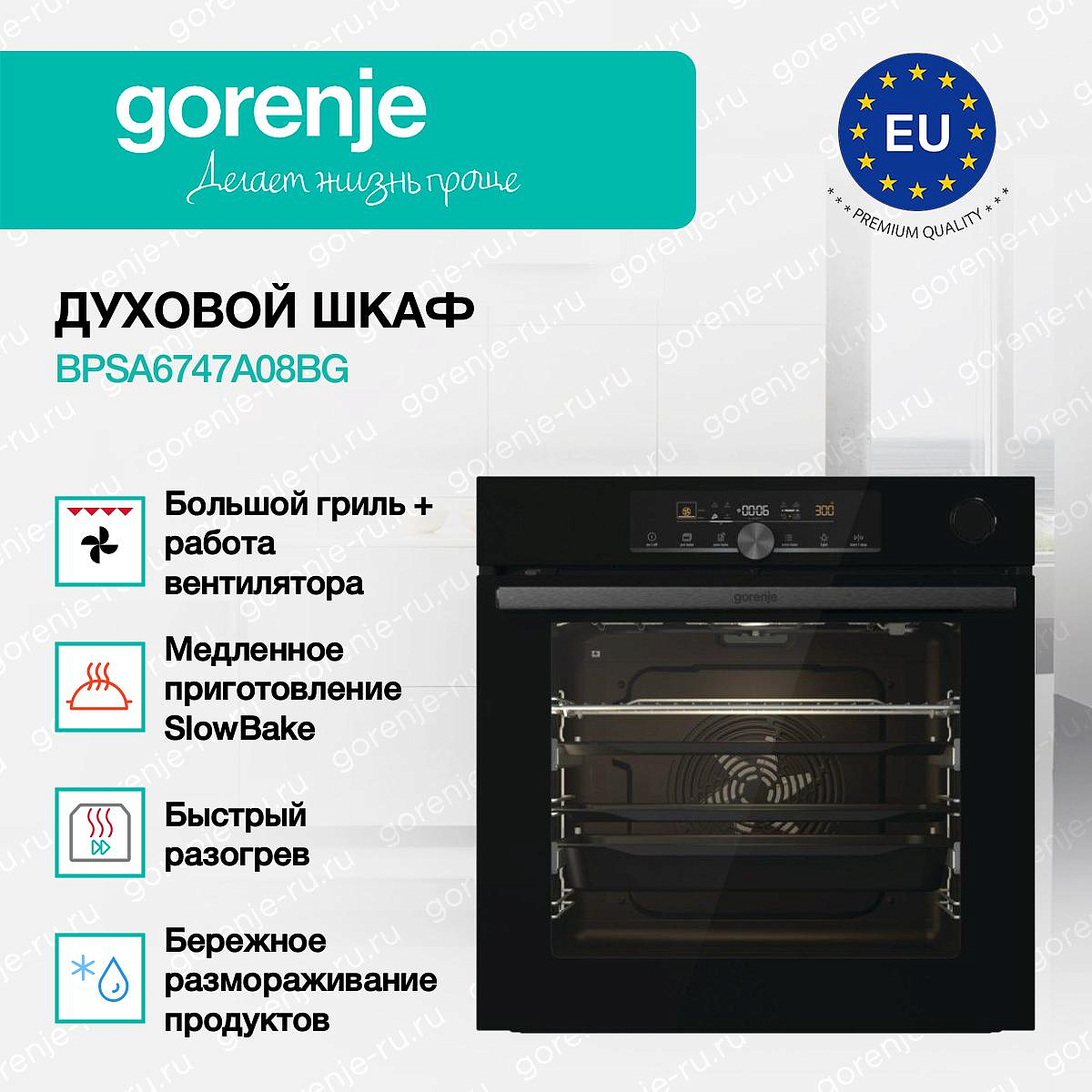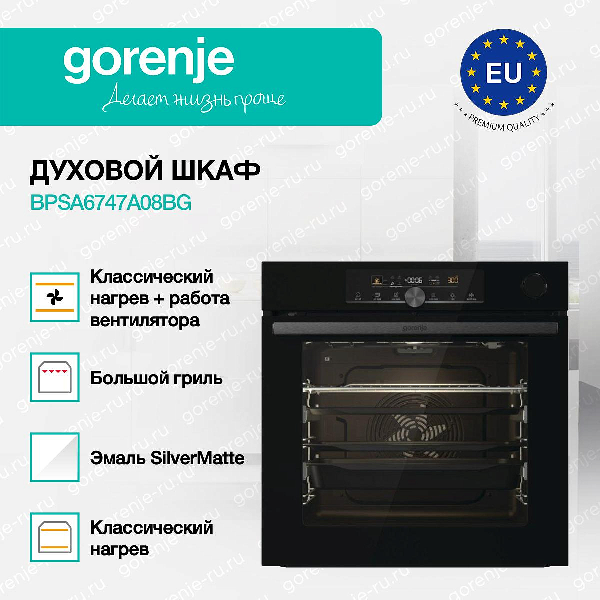 Встречайте независимую электрическую духовку Gorenje BPSA6747A08BG — новинку в ассортименте нашего магазина, который является официальным дилером бренда Горенье. Эта модель станет отличным выбором для тех, кто ценит функциональность, надежность и стиль. В обзоре мы расскажем о внешнем виде, технических характеристиках, функционале, энергоэффективности и особенностях эксплуатации.