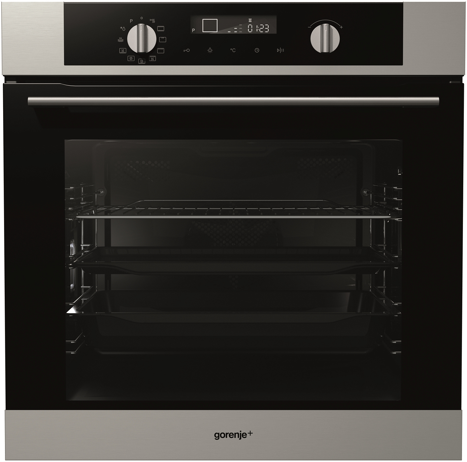 Независимая духовка Gorenje Plus GP527X — многофункциональная модель с пиролитической очисткой. При выборе режима пиролиза дверца автоматически блокируется, температура в рабочей камере поднимается до 500°C, все загрязнения при этом сгорают. От перегревания фронтальную поверхность защищает конструкция дверцы UltraCoolDoorQuadro+, состоящая из 4 стекол и 2 термослоев. Система DynamiCooling предотвращает перегрев мебели.