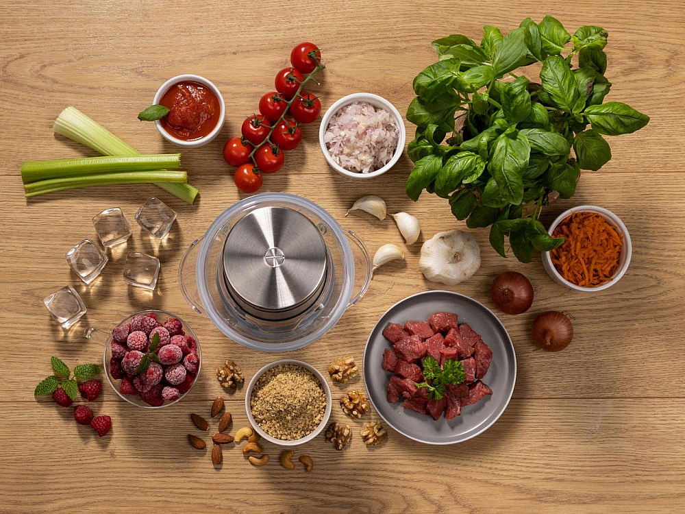 Управление осуществляется с помощью кнопки ВКЛ./ВЫКЛ. с предохранителем, а для повышения мощности предусмотрена функция «Турбо». В случае перегрузки устройство автоматически отключается, что обеспечивает безопасность использования. Прибор оснащен ножом из нержавеющей стали SU S303 с четырьмя лезвиями, что гарантирует быструю и качественную нарезку. Стабильные ножки и прорезиненное противоскользящее основание обеспечивают надежное крепление на рабочей поверхности. Длина присоединительного кабеля составляет 1050 мм, что предоставляет достаточную свободу в размещении устройства на кухне. Вес нетто составляет всего 1.8 кг, а размеры в упаковке (300×193×173 мм) облегчают его транспортировку и хранение. Измельчитель также полностью разборный, что позволяет мыть съемные детали в посудомоечной машине.