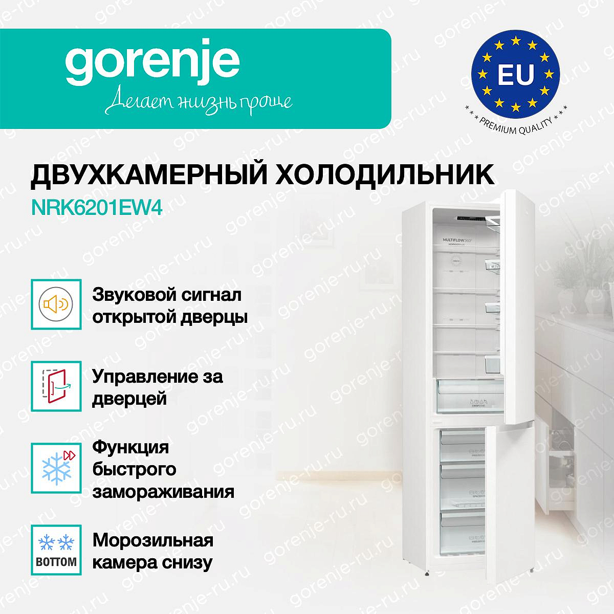 Холодильник Gorenje NRK6201EW4 — это продуманное сочетание практичности, технологичности и эстетики. Он отлично подходит для повседневного использования, обеспечивая комфорт, порядок и уверенность в качестве хранения ваших продуктов.