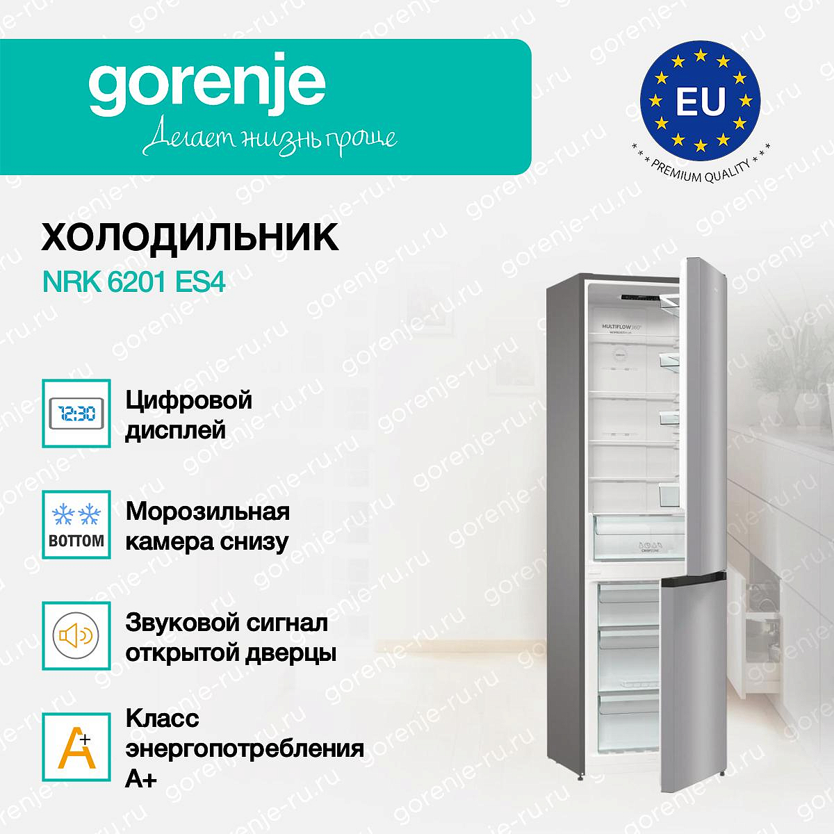 ** Все информационные материалы, представленные на Сайте, носят справочный характер и не могут в полной мере передавать достоверную информацию о свойствах, комплектации и характеристиках товара, включая цвета, размеры и формы. Фирма-производитель оставляет за собой право на внесение изменений в конструкцию, дизайн и комплектацию товара без предварительного уведомления. Перед оформлением Заказа Покупатель должен обратиться к Продавцу для уточнения свойств и характеристик Товара. Подробная информация о товаре указывается в инструкции и на упаковке товара. Используемое название в России: Горенье NRK 6201 ES4