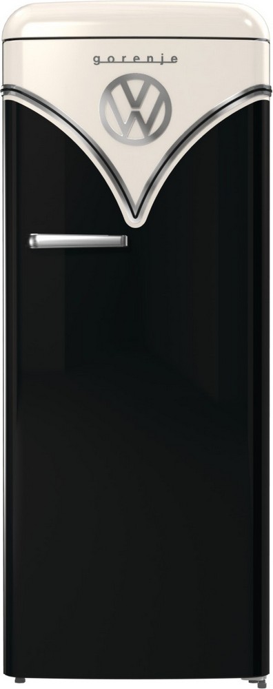 Отдельностоящий двухкамерный холодильник Gorenje OBRB615DBK выполнен в стиле ретро. Невысокая модель — всего 152,5 см — подойдет и для семей с детьми, и для одиночек. На черной поверхности дверцы расположены эффектные вставки бежевого и серебристого цветов. Ручка — внешняя. Несмотря на компактный размер, объем основного отделения устройства составляет 225 л, а морозильного — 22 л. Внутреннее пространство освещено с помощью боковой светодиодной подсветки. Электронное управление смогут освоить все члены семьи. Дверца модели открывается вправо.
