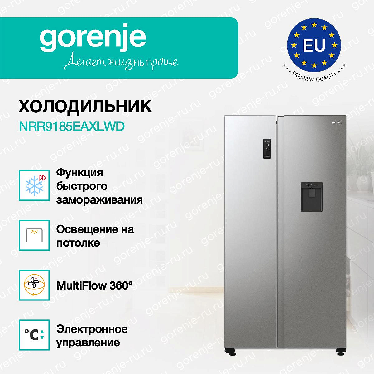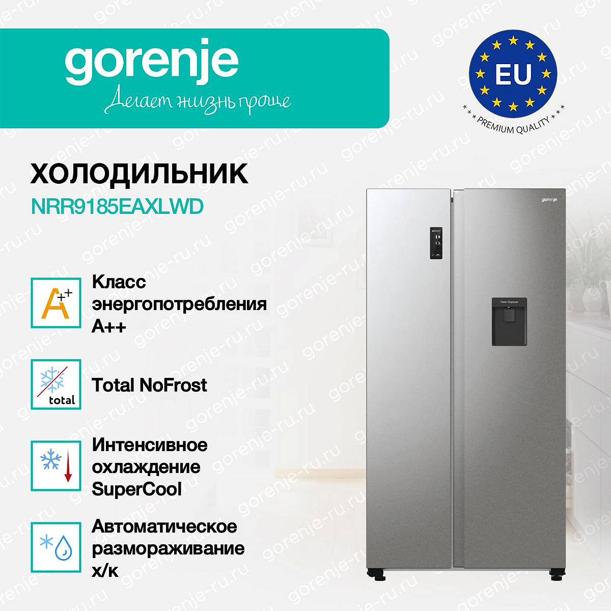 ** Все информационные материалы, представленные на Сайте, носят справочный характер и не могут в полной мере передавать достоверную информацию о свойствах, комплектации и характеристиках товара, включая цвета, размеры и формы. Фирма-производитель оставляет за собой право на внесение изменений в конструкцию, дизайн и комплектацию товара без предварительного уведомления. Перед оформлением Заказа Покупатель должен обратиться к Продавцу для уточнения свойств и характеристик Товара. Подробная информация о товаре указывается в инструкции и на упаковке товара. Используемое название в России: Горенье NRR9185EAXLWD