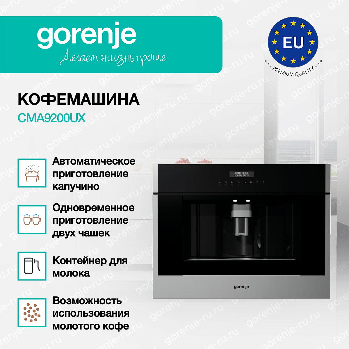 ** Все информационные материалы, представленные на Сайте, носят справочный характер и не могут в полной мере передавать достоверную информацию о свойствах, комплектации и характеристиках товара, включая цвета, размеры и формы. Фирма-производитель оставляет за собой право на внесение изменений в конструкцию, дизайн и комплектацию товара без предварительного уведомления. Перед оформлением Заказа Покупатель должен обратиться к Продавцу для уточнения свойств и характеристик Товара. Подробная информация о товаре указывается в инструкции и на упаковке товара. Используемое название в России: Горенье CMA9200UX