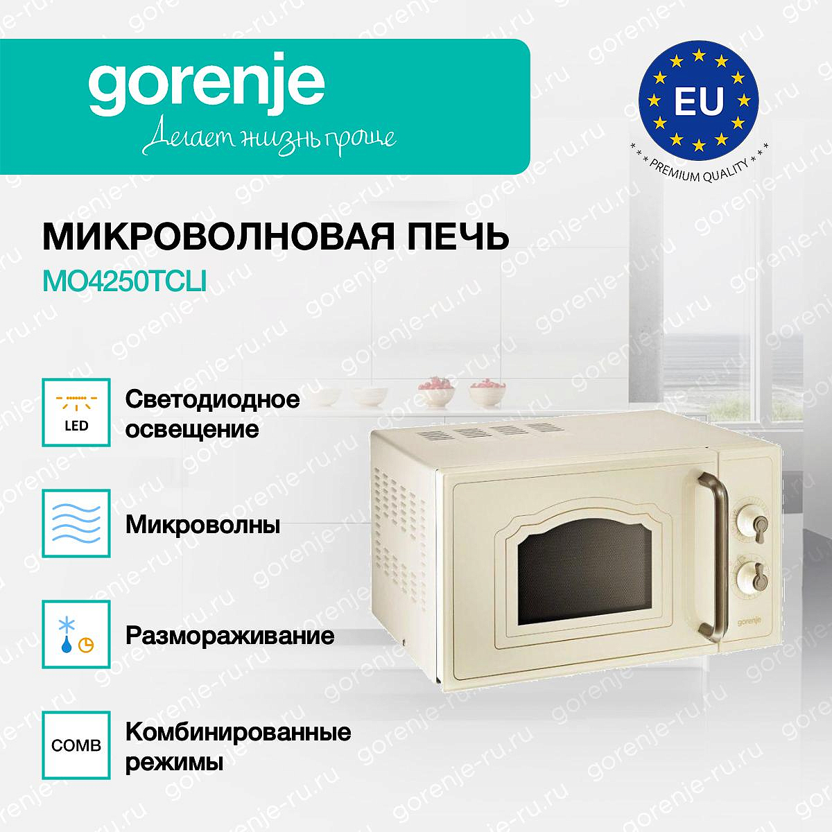** Все информационные материалы, представленные на Сайте, носят справочный характер и не могут в полной мере передавать достоверную информацию о свойствах, комплектации и характеристиках товара, включая цвета, размеры и формы. Фирма-производитель оставляет за собой право на внесение изменений в конструкцию, дизайн и комплектацию товара без предварительного уведомления. Перед оформлением Заказа Покупатель должен обратиться к Продавцу для уточнения свойств и характеристик Товара. Подробная информация о товаре указывается в инструкции и на упаковке товара. Используемое название в России: Горенье MO4250TCLI