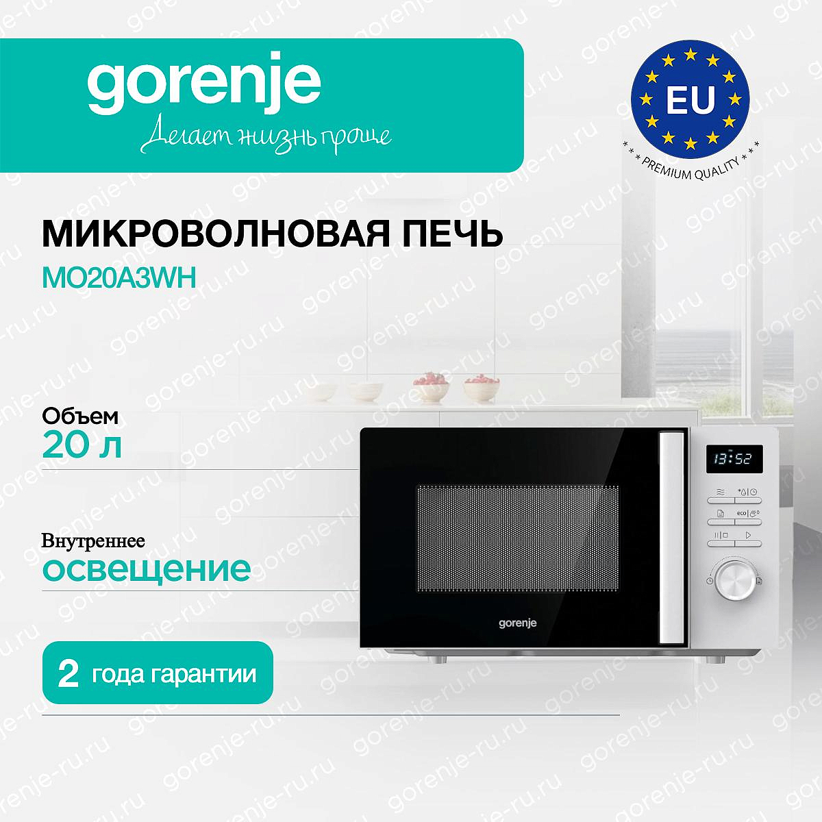 ** Все информационные материалы, представленные на Сайте, носят справочный характер и не могут в полной мере передавать достоверную информацию о свойствах, комплектации и характеристиках товара, включая цвета, размеры и формы. Фирма-производитель оставляет за собой право на внесение изменений в конструкцию, дизайн и комплектацию товара без предварительного уведомления. Перед оформлением Заказа Покупатель должен обратиться к Продавцу для уточнения свойств и характеристик Товара. Подробная информация о товаре указывается в инструкции и на упаковке товара. Используемое название в России: Горенье MO20A3WH