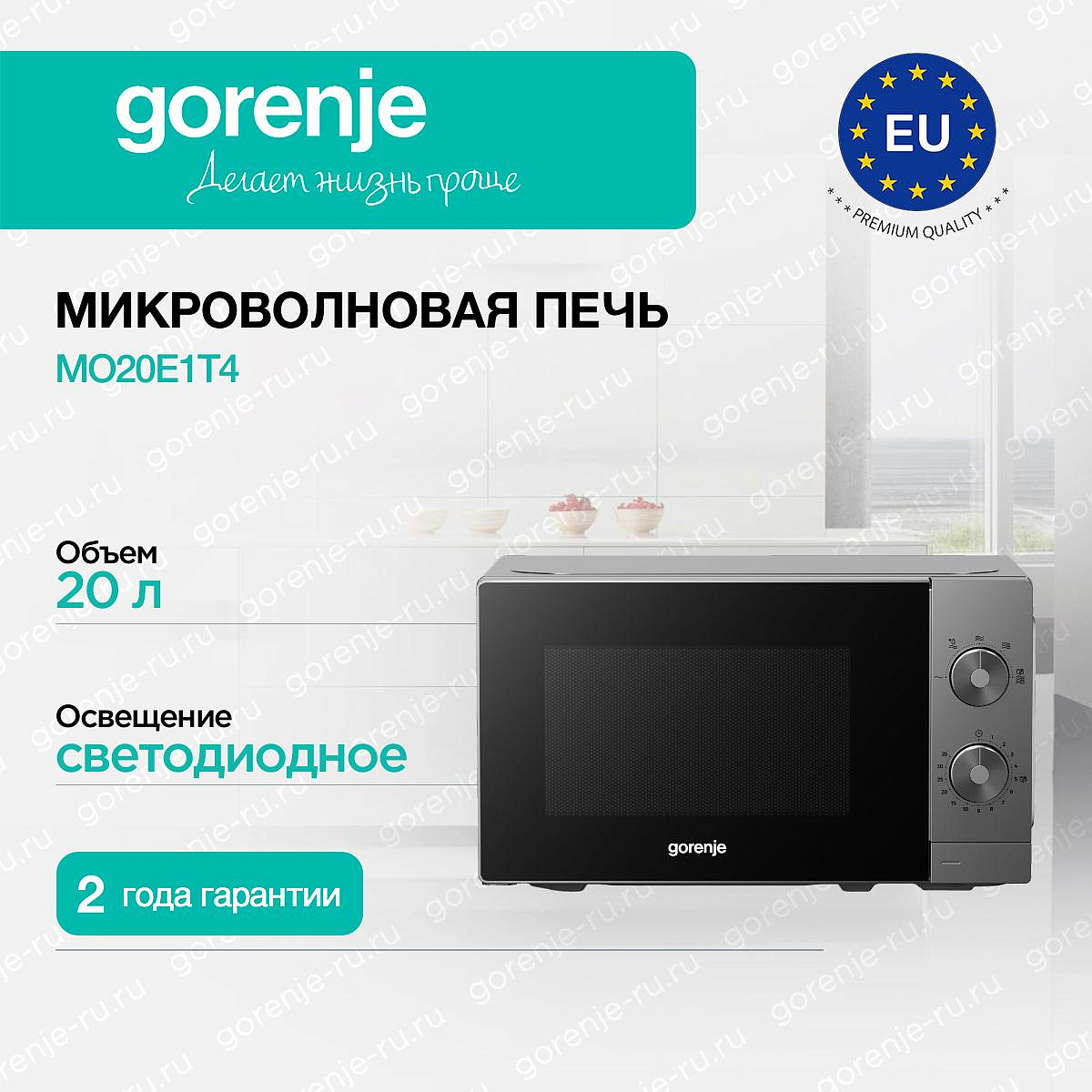 ** Все информационные материалы, представленные на Сайте, носят справочный характер и не могут в полной мере передавать достоверную информацию о свойствах, комплектации и характеристиках товара, включая цвета, размеры и формы. Фирма-производитель оставляет за собой право на внесение изменений в конструкцию, дизайн и комплектацию товара без предварительного уведомления. Перед оформлением Заказа Покупатель должен обратиться к Продавцу для уточнения свойств и характеристик Товара. Подробная информация о товаре указывается в инструкции и на упаковке товара. Используемое название в России: Горенье MO20E1T4