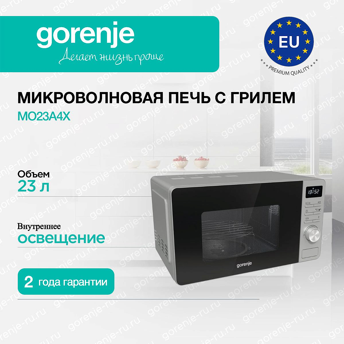 ** Все информационные материалы, представленные на Сайте, носят справочный характер и не могут в полной мере передавать достоверную информацию о свойствах, комплектации и характеристиках товара, включая цвета, размеры и формы. Фирма-производитель оставляет за собой право на внесение изменений в конструкцию, дизайн и комплектацию товара без предварительного уведомления. Перед оформлением Заказа Покупатель должен обратиться к Продавцу для уточнения свойств и характеристик Товара. Подробная информация о товаре указывается в инструкции и на упаковке товара. Используемое название в России: Горенье MO23A4X