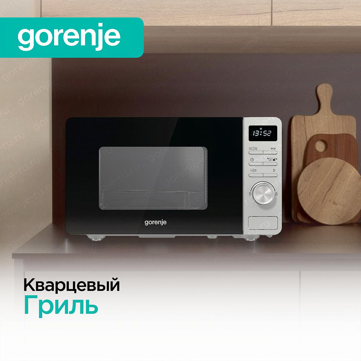 Освещение в отдельностоящих микроволновках Gorenje — практичное и надёжное решение для удобного контроля за приготовлением. В большинстве моделей используется галогенная или LED-лампа, которая включается автоматически при старте программы и при открывании дверцы. Яркий свет равномерно освещает внутреннюю камеру, позволяя следить за процессом без прерывания работы — особенно полезно при разогреве, разморозке или готовке. LED-освещение экономично, не греется и служит дольше.