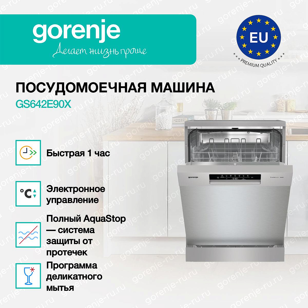 ** Все информационные материалы, представленные на Сайте, носят справочный характер и не могут в полной мере передавать достоверную информацию о свойствах, комплектации и характеристиках товара, включая цвета, размеры и формы. Фирма-производитель оставляет за собой право на внесение изменений в конструкцию, дизайн и комплектацию товара без предварительного уведомления. Перед оформлением Заказа Покупатель должен обратиться к Продавцу для уточнения свойств и характеристик Товара. Подробная информация о товаре указывается в инструкции и на упаковке товара. Используемое название в России: Горенье GS642E90X
