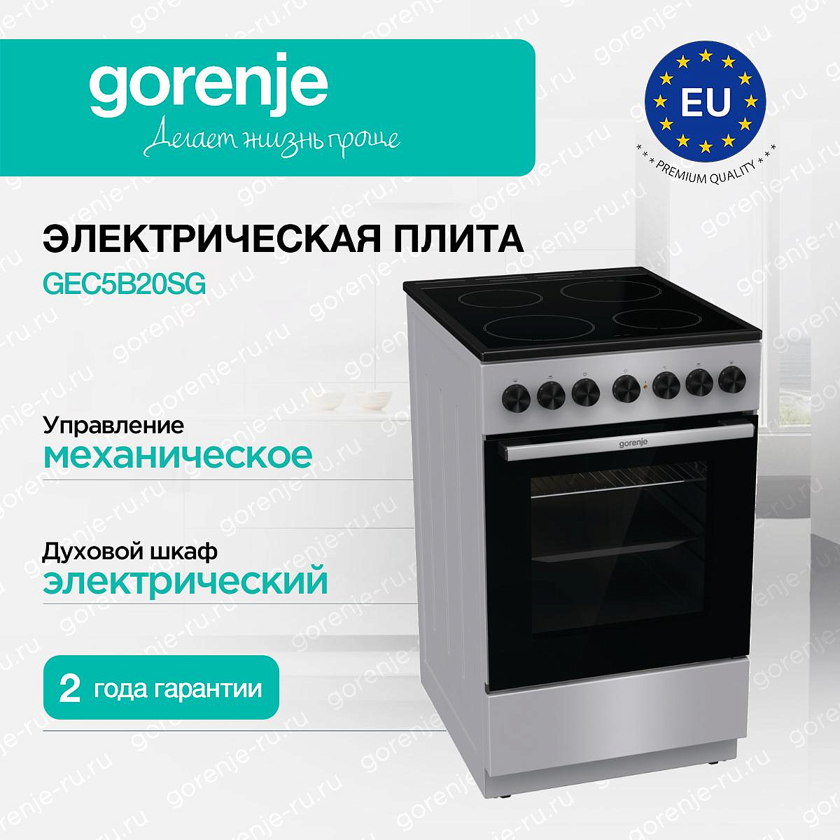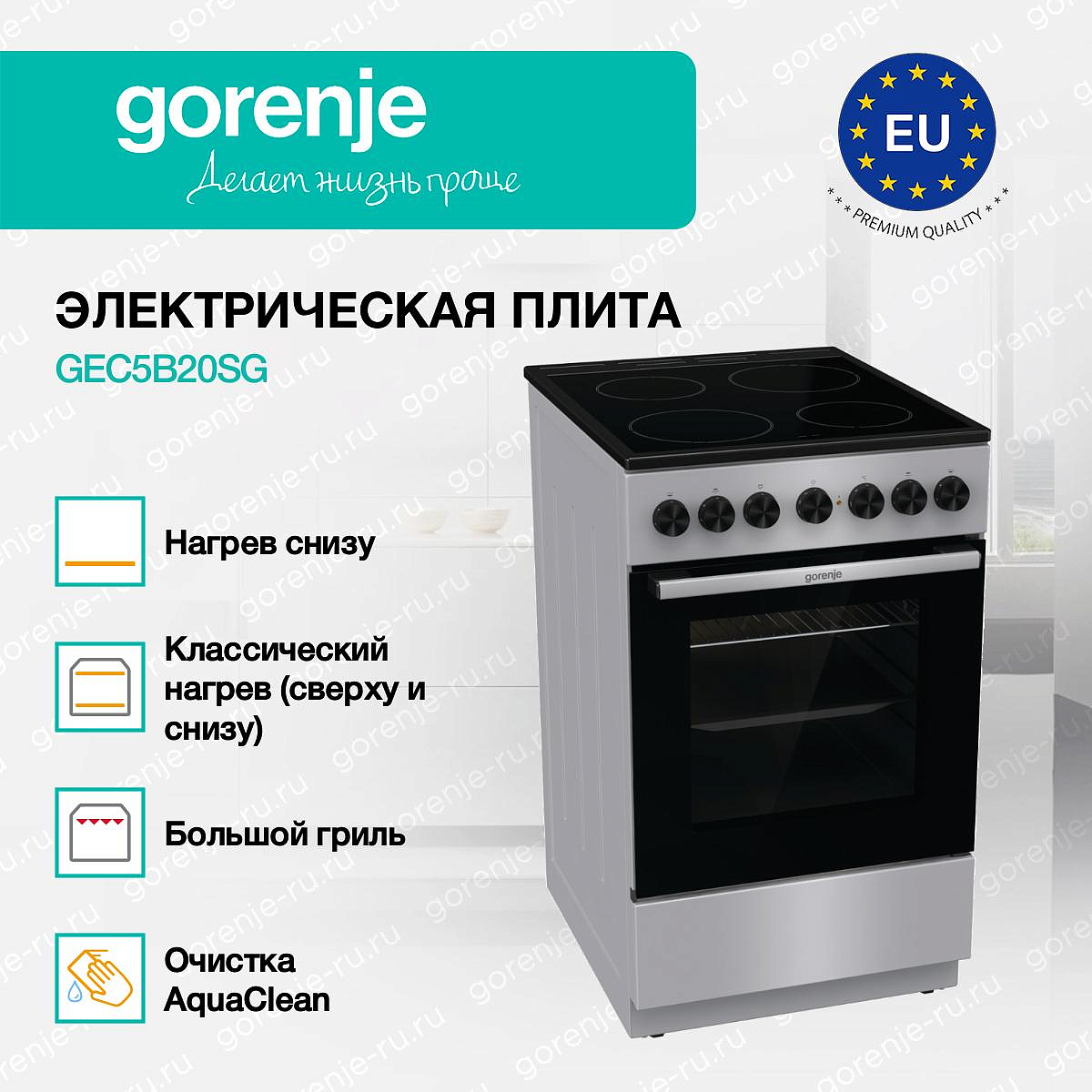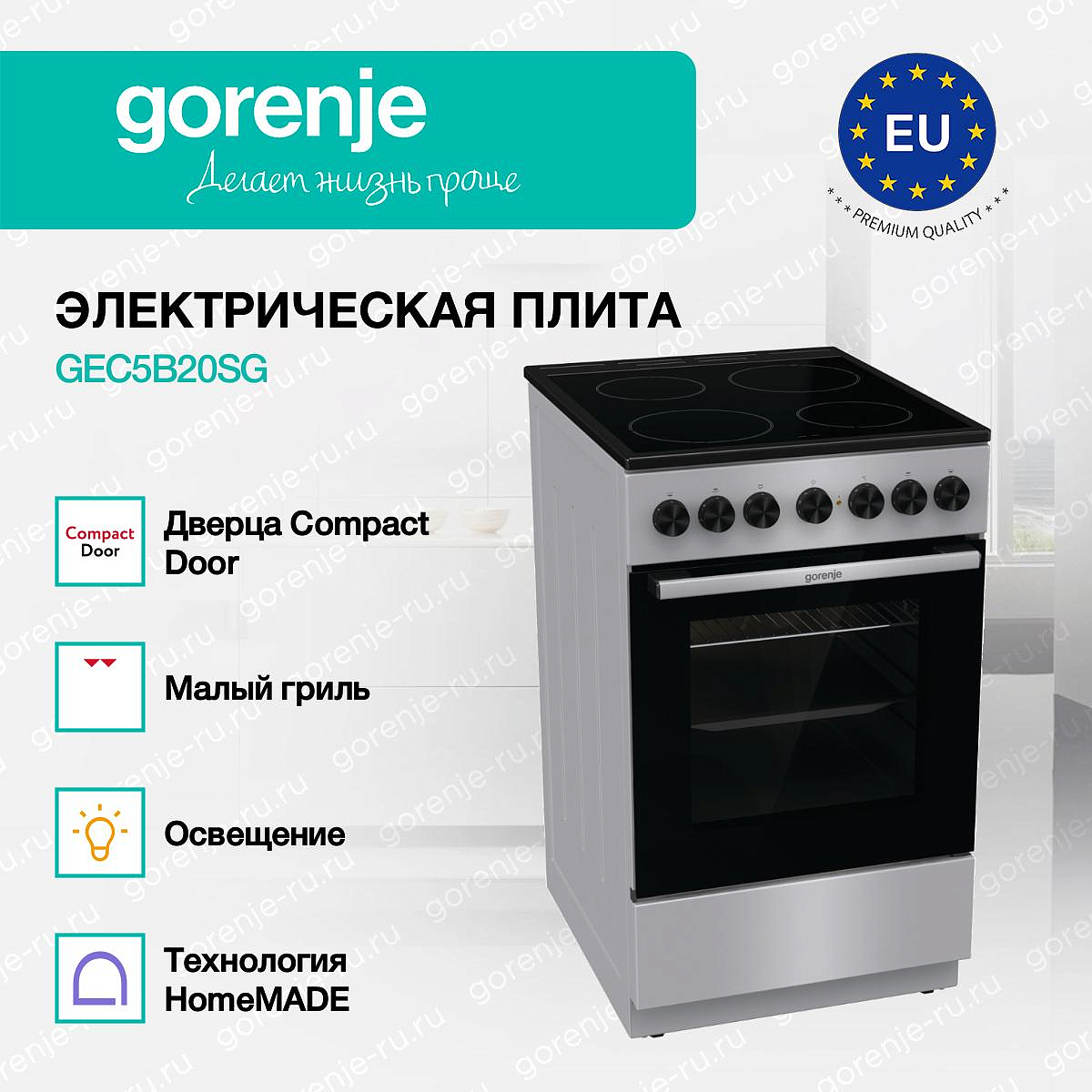 ** Все информационные материалы, представленные на Сайте, носят справочный характер и не могут в полной мере передавать достоверную информацию о свойствах, комплектации и характеристиках товара, включая цвета, размеры и формы. Фирма-производитель оставляет за собой право на внесение изменений в конструкцию, дизайн и комплектацию товара без предварительного уведомления. Перед оформлением Заказа Покупатель должен обратиться к Продавцу для уточнения свойств и характеристик Товара. Подробная информация о товаре указывается в инструкции и на упаковке товара. Используемое название в России: Горенье GEC5B20SG
