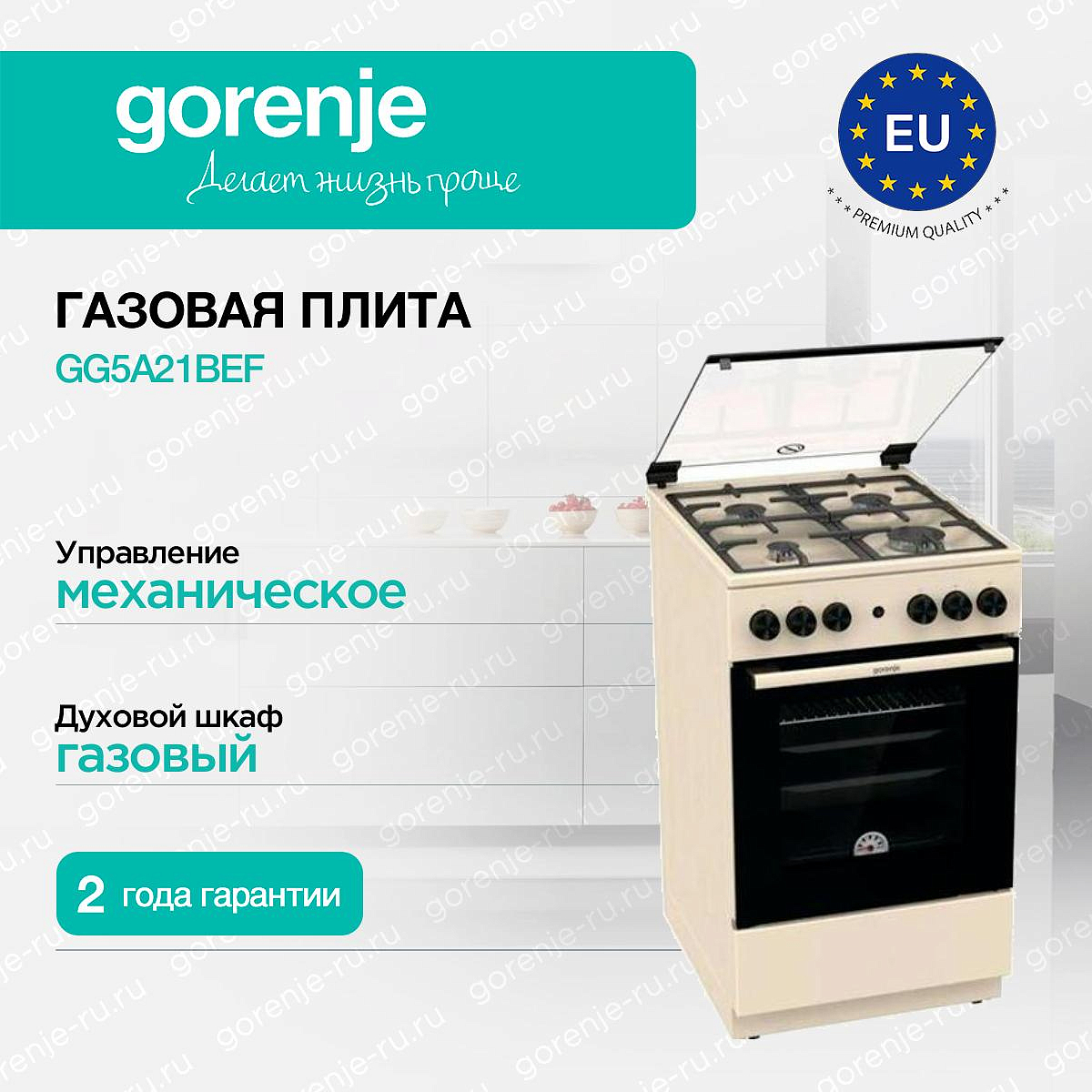 ** Все информационные материалы, представленные на Сайте, носят справочный характер и не могут в полной мере передавать достоверную информацию о свойствах, комплектации и характеристиках товара, включая цвета, размеры и формы. Фирма-производитель оставляет за собой право на внесение изменений в конструкцию, дизайн и комплектацию товара без предварительного уведомления. Перед оформлением Заказа Покупатель должен обратиться к Продавцу для уточнения свойств и характеристик Товара. Подробная информация о товаре указывается в инструкции и на упаковке товара. Используемое название в России: Горенье GG5A21BEF