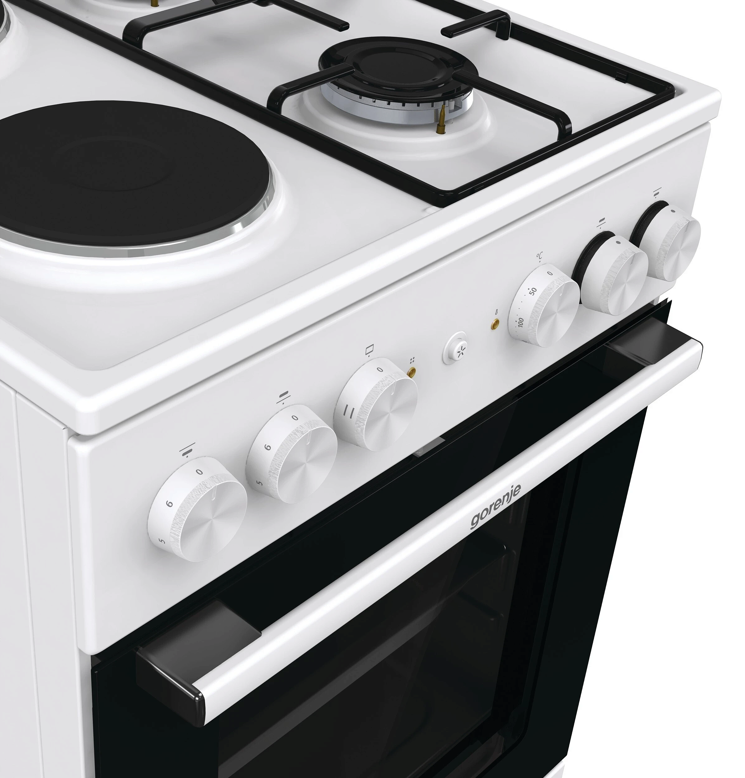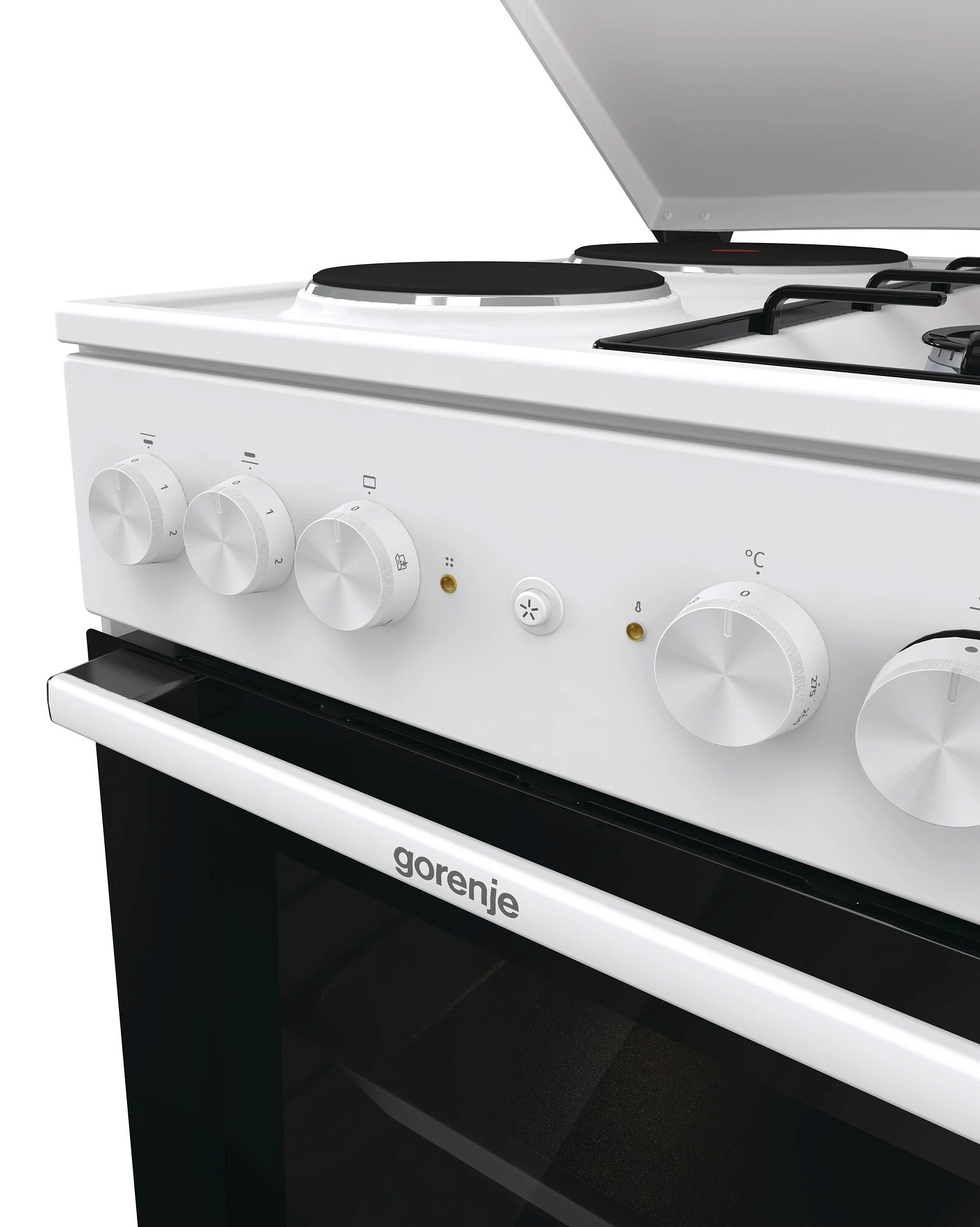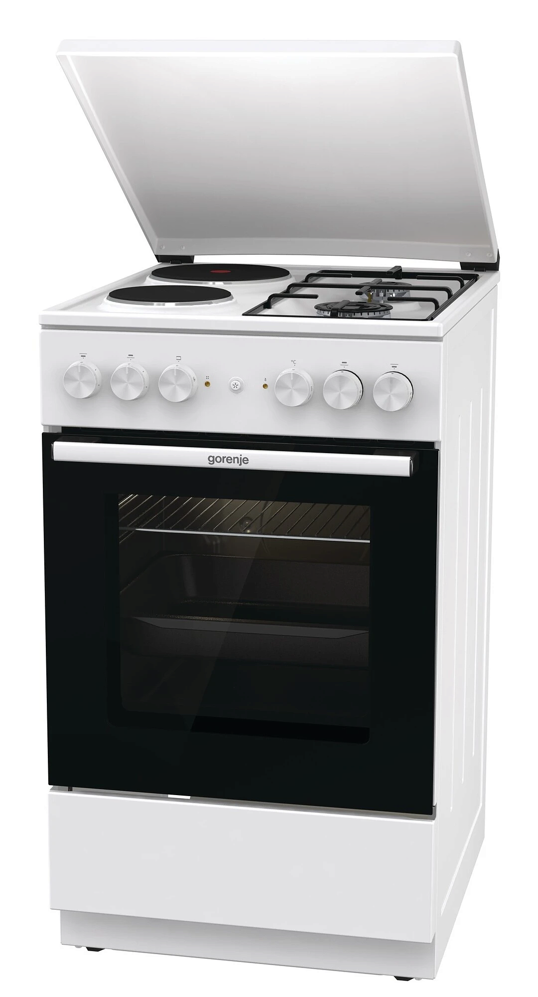 Комбинированная плита Gorenje GK5A12WG — это уникальное сочетание функциональности, стиля и надежности. Изготовленная в Чехии, эта модель отличается высоким качеством и продуманным дизайном. Белый цвет корпуса и фурнитуры придает плите свежий и чистый вид, который легко впишется в любой интерьер кухни. Техника оснащена комбинированной варочной поверхностью, выполненной из эмали и покрытой стеклянной крышкой. Это позволяет готовить блюда на двух газовых и двух чугунных конфорках одновременно, что значительно увеличивает функциональность плиты и упрощает процесс приготовления пищи.