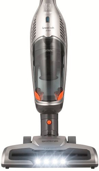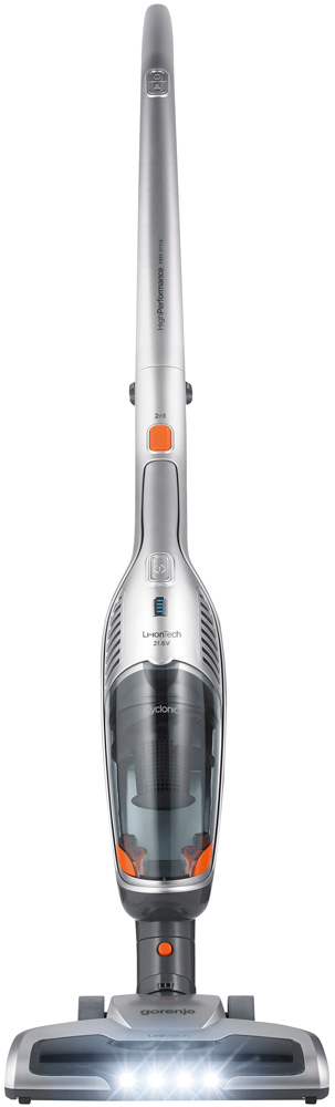 Пылесос Gorenje SVC216FS — удобная, стильная и современная техника серебристого цвета, являющаяся беспроводной вертикальной и ручной моделью. Предназначена для сухой уборки. Подойдет для уборки любых помещений, а благодаря наличию ручного варианта поможет в очистке мягкой мебели или салона вашего автомобиля. Техника работает на аккумуляторе, время зарядки которого составляет всего 4-6 часов. Полный цикл работы без подзарядки достигает 60 минут. За это время вы легко справитесь с приборкой в квартире или доме большой площади. Отсутствие провода и два прорезиненных колесика делают технику мобильной и простой в управлении, а складная ручка позволит провести приборку в трудных местах — под диваном, кроватью и так далее.