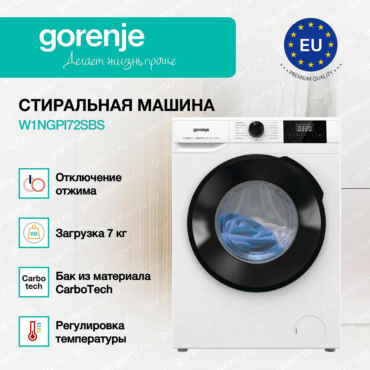 Стиральная машина Gorenje W1NGPI72SBS — это современное бытовое устройство, которое сочетает в себе стильный дизайн и передовые технологии.