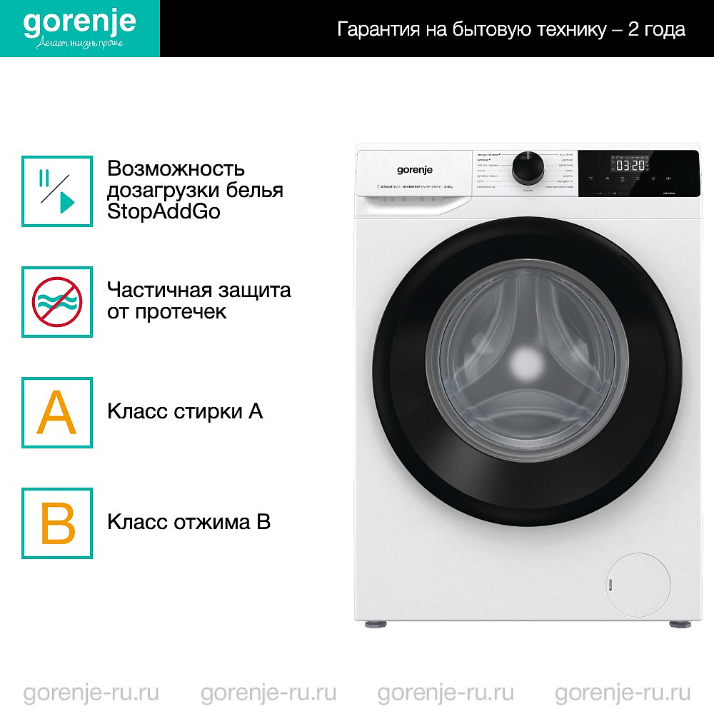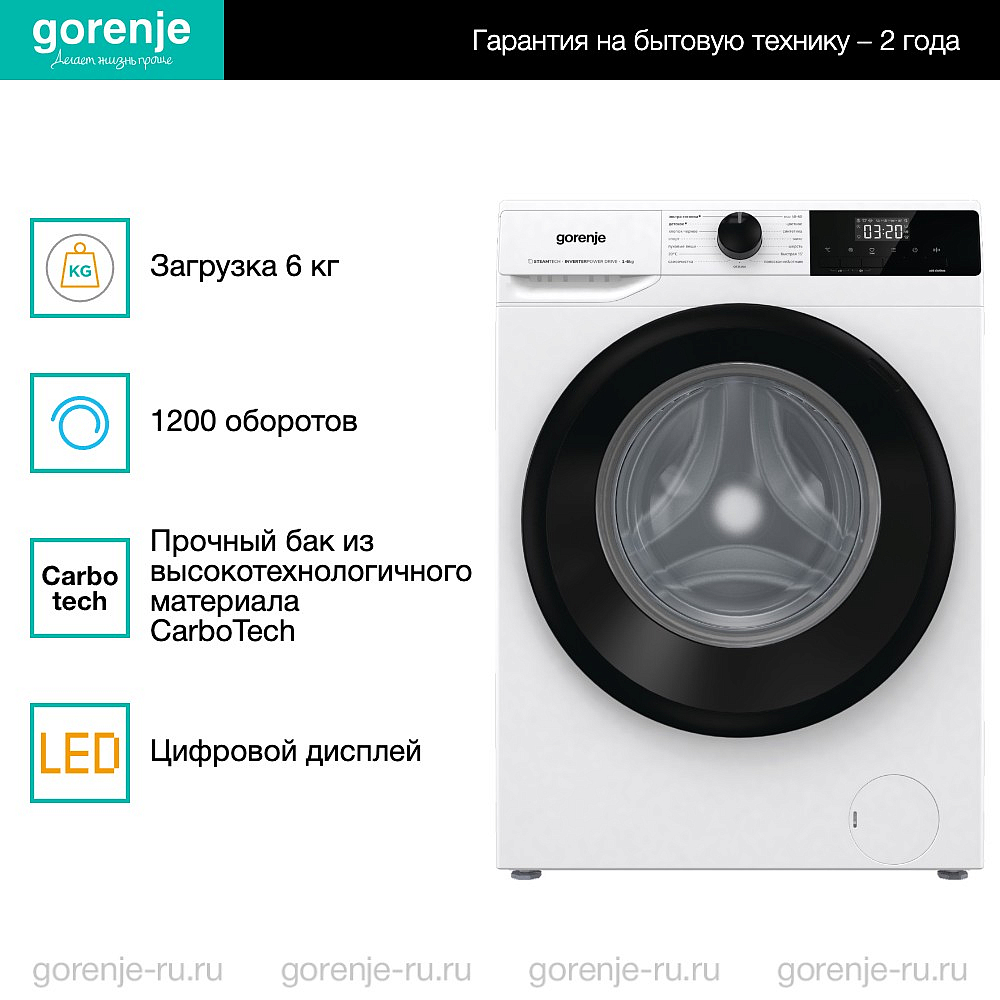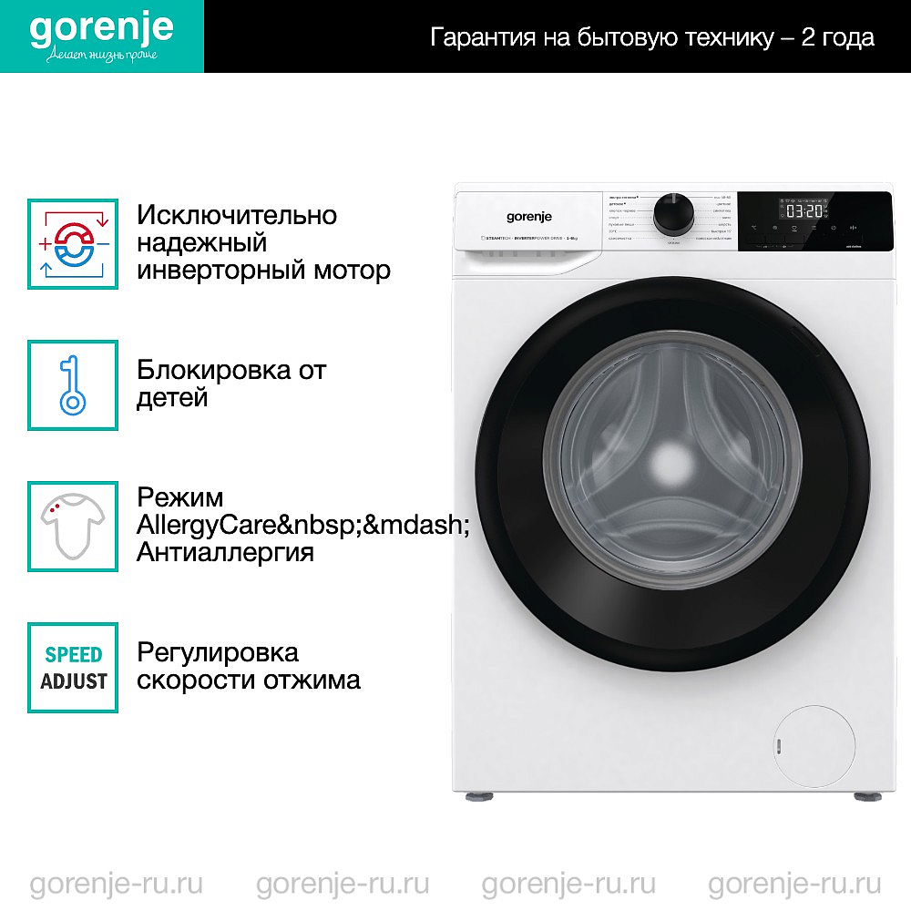 Стиральная машина Gorenje W1NHEI62SAS - это превосходное сочетание современного дизайна, функциональности и надежности. Изготовленная в Китае, эта модель обладает привлекательным белым цветом корпуса и черным цветом загрузочного люка, что придает ей изысканный и современный вид. Фронтальный тип загрузки обеспечивает удобство использования, а максимальная загрузка в 7 кг позволяет стирать большое количество белья за один цикл.