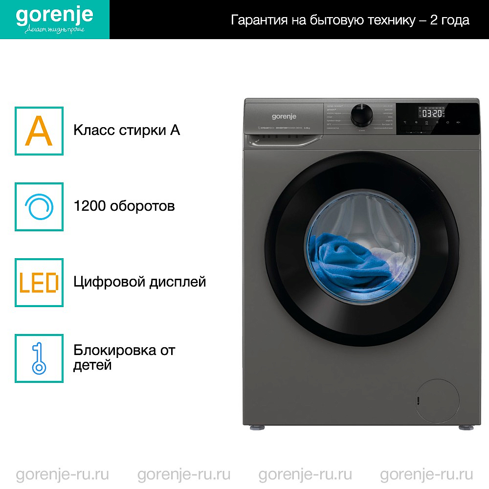 Стиральная машина Gorenje W2NHPI62SCSS выполнена в элегантном сером цвете. В модели установлен современный инверторный мотор, который сразу присоединяется к барабану (без ремней). Благодаря этому прибор работает тихо. Его можно устанавливать даже в жилых комнатах. Дисплей цифровой, на нем отображается информация о времени, которое осталось до окончания программы, а также о других настройках. Максимальная загрузка барабана — 6 кг. Изделие универсально и подходит для большинства людей. Можно настроить отсрочку старта (до 24 часов). Выберите желаемое время, прибор включится в нужный момент.