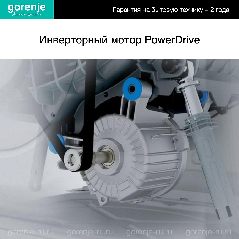Стиральная машина Gorenje W2NHPI72SCSIRV одна из самых вместительных на рынке моделей с фронтальной загрузкой. Вместимость барабана у нее 7 кг, габариты в саниметрах 85×59.5×73.5 (ВxШxГ). Подойдет для просторной ванной, большой подсобки или загородного дома, белый неброский корпус впишется в любой дизайн. Инверторный износостойкий мотор PowerDrive, в котором нет трущихся деталей, работает надежно, тихо и экономно. Диапазон температур от 15 до 90 градусов с возможностью их регулирования. Есть функция отключения режима стирки, если вам нужно поменять программу.