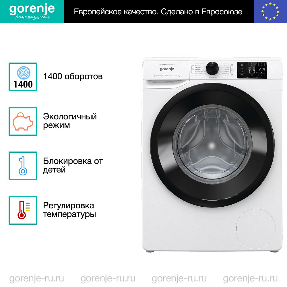 Стиральная машина Gorenje WNEI84BS, произведенная в Словении, представляет собой высококачественное устройство из дизайн-линии Essential. Она обладает стильным белым корпусом, который гармонично впишется в любой интерьер.