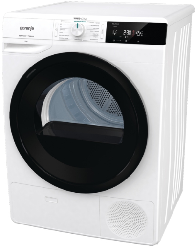 Конденсационная сушильная машина Gorenje DE92/G это современный прибор со всеми необходимыми функциями. Внешний вид отличается контрастным дизайном, черный люк на белом корпусе смотрится стильно. Данная модель оборудована тепловым насосом. Это означает, что внутри безостановочно циркулирует горячий воздух, тем самым заметно сокращая время на просушку ткани. Также в результате такой равномерной обработки вы можете использовать прибор для абсолютно любых предметов, начиная от одежды и заканчивая пледами и подушками.