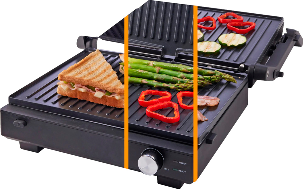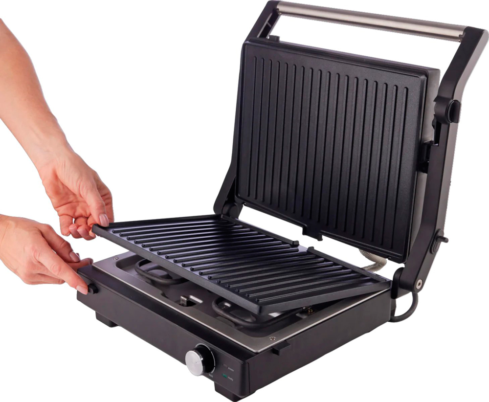Особенностью модели является двустороннее обжаривание, которое обеспечивает равномерное приготовление сэндвичей, стейков, овощей и других блюд. Благодаря четырём степеням нагрева пользователь может самостоятельно регулировать интенсивность тепла, подбирая оптимальный режим для каждого рецепта. Включение прибора происходит нажатием на кнопку, что упрощает управление и делает процесс запуска быстрым и удобным. Индикаторы температуры на корпусе информируют о текущем состоянии устройства, позволяя контролировать процесс приготовления и своевременно менять настройки при необходимости. Пластины имеют рифленую поверхность и одностороннее антипригарное покрытие, что облегчает очистку и предотвращает прилипание продуктов, сохраняя их целостность и привлекательный внешний вид.