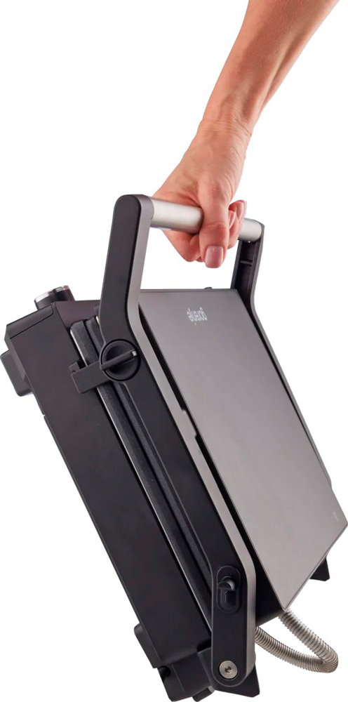 Контактный гриль Gorenje GCG2000M выполнен в стильном корпусе из крашеного металла с элегантным покрытием из нержавеющей стали, что придаёт устройству современный и презентабельный вид. Компактные габариты 16×35×34 см делают прибор удобным для размещения на любой кухне, не занимая много места. При весе 3.9 кг устройство достаточно лёгкое, что облегчает его переноску и хранение. Эргономичная ручка для переноски и прорезиненные ножки обеспечивают устойчивость и безопасность при эксплуатации, а холодные ручки позволяют комфортно открывать и закрывать гриль даже во время работы, предотвращая ожоги и повышая удобство использования. Защитная защелка гарантирует надёжное закрытие крышки в процессе приготовления, что способствует равномерному обжариванию продуктов и предотвращает случайное раскрытие.