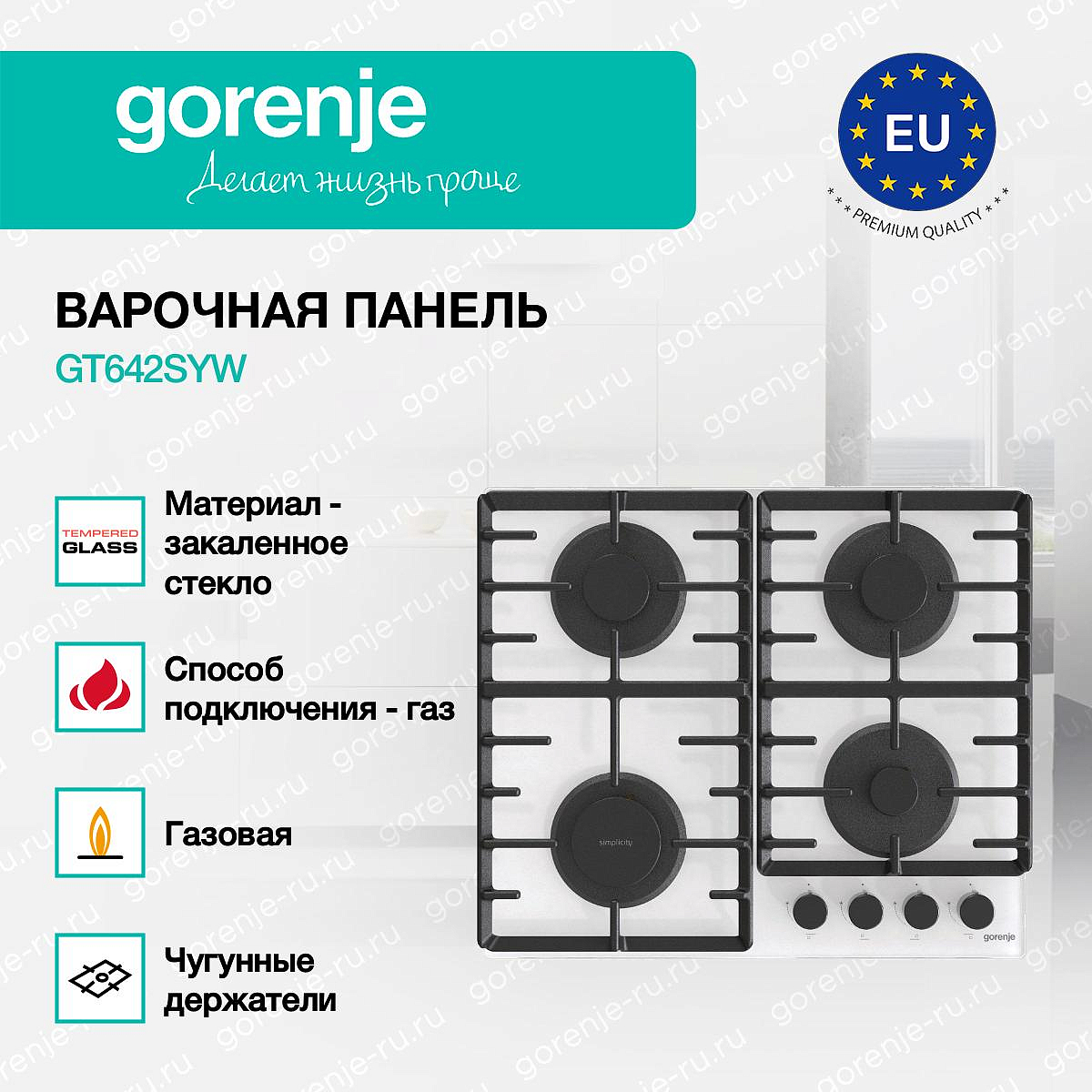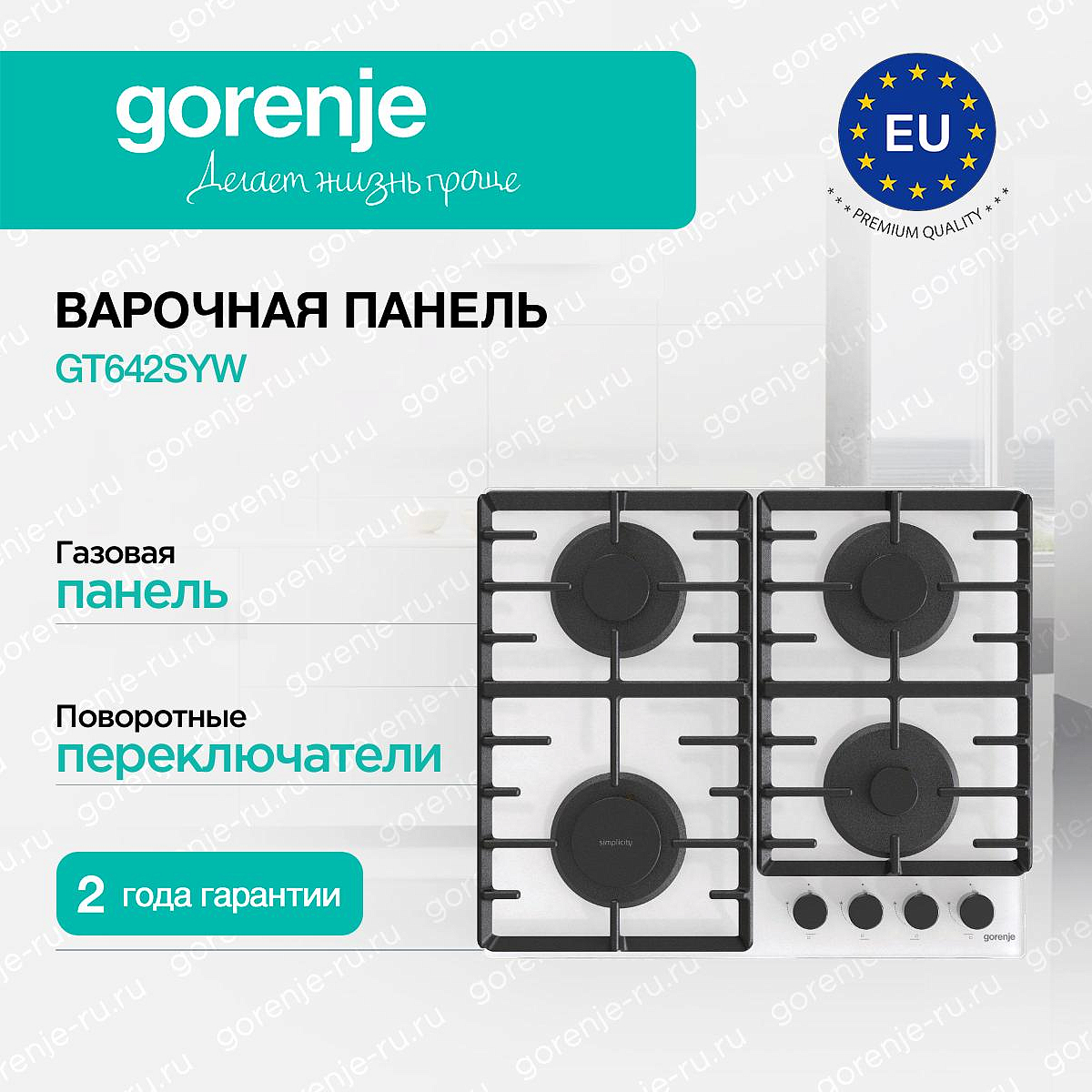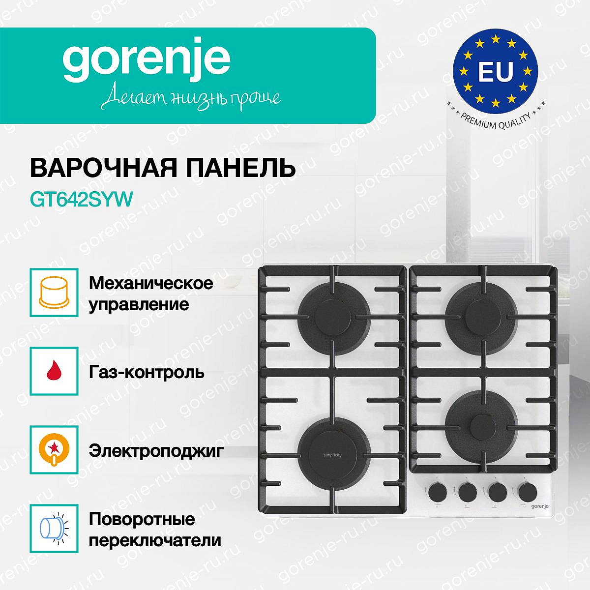 ** Все информационные материалы, представленные на Сайте, носят справочный характер и не могут в полной мере передавать достоверную информацию о свойствах, комплектации и характеристиках товара, включая цвета, размеры и формы. Фирма-производитель оставляет за собой право на внесение изменений в конструкцию, дизайн и комплектацию товара без предварительного уведомления. Перед оформлением Заказа Покупатель должен обратиться к Продавцу для уточнения свойств и характеристик Товара. Подробная информация о товаре указывается в инструкции и на упаковке товара. Используемое название в России: Горенье GT642SYW