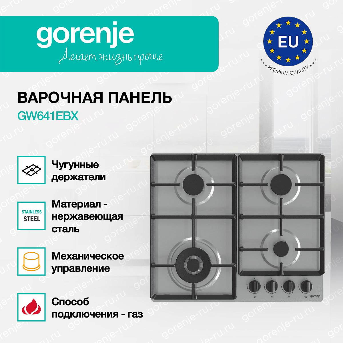 ** Все информационные материалы, представленные на Сайте, носят справочный характер и не могут в полной мере передавать достоверную информацию о свойствах, комплектации и характеристиках товара, включая цвета, размеры и формы. Фирма-производитель оставляет за собой право на внесение изменений в конструкцию, дизайн и комплектацию товара без предварительного уведомления. Перед оформлением Заказа Покупатель должен обратиться к Продавцу для уточнения свойств и характеристик Товара. Подробная информация о товаре указывается в инструкции и на упаковке товара. Используемое название в России: Горенье GW641EBX