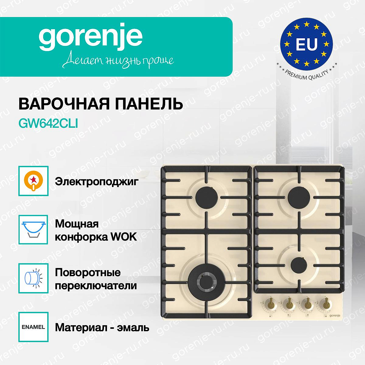 ** Все информационные материалы, представленные на Сайте, носят справочный характер и не могут в полной мере передавать достоверную информацию о свойствах, комплектации и характеристиках товара, включая цвета, размеры и формы. Фирма-производитель оставляет за собой право на внесение изменений в конструкцию, дизайн и комплектацию товара без предварительного уведомления. Перед оформлением Заказа Покупатель должен обратиться к Продавцу для уточнения свойств и характеристик Товара. Подробная информация о товаре указывается в инструкции и на упаковке товара. Используемое название в России: Горенье GW642CLI