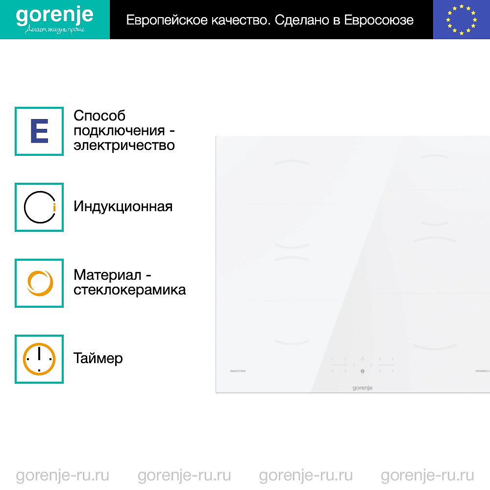 ** Все информационные материалы, представленные на Сайте, носят справочный характер и не могут в полной мере передавать достоверную информацию о свойствах, комплектации и характеристиках товара, включая цвета, размеры и формы. Фирма-производитель оставляет за собой право на внесение изменений в конструкцию, дизайн и комплектацию товара без предварительного уведомления. Перед оформлением Заказа Покупатель должен обратиться к Продавцу для уточнения свойств и характеристик Товара. Подробная информация о товаре указывается в инструкции и на упаковке товара. Используемое название в России: Горенье GI6401WSC