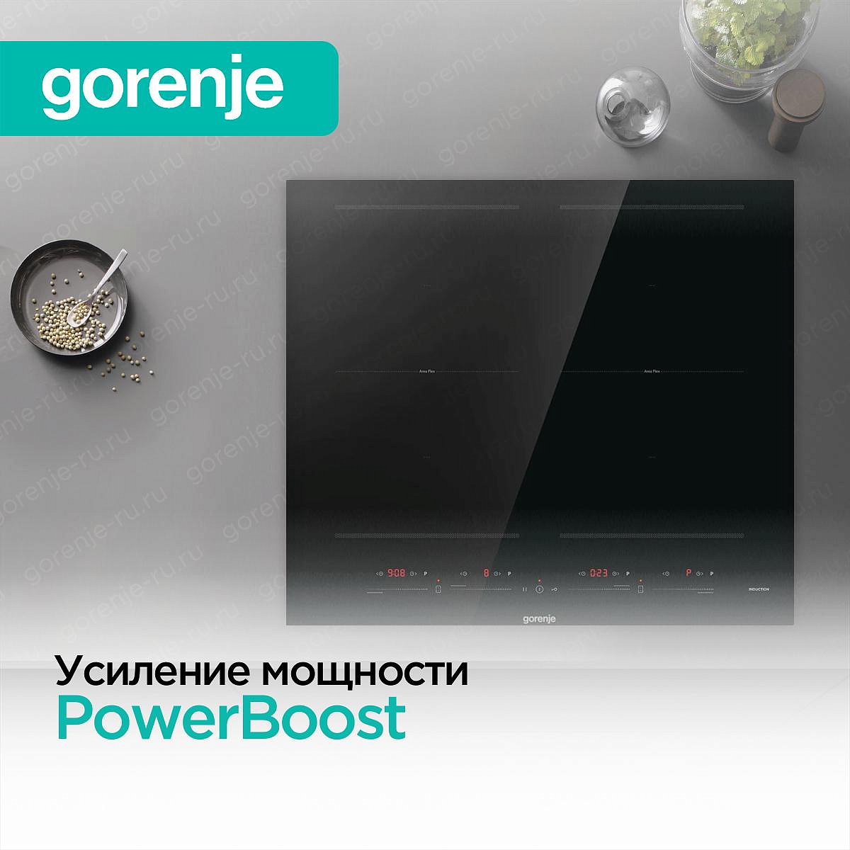 AreaFlex имеет второе название — Flexi. Это технология, которая позволяет объединить две соседствующие конфорки в одну прямоугольную с помощью моста. Таким образом, пользователь получает вытянутую зону нагрева. На ней можно использовать посуду с овальным или прямоугольным дном. В зависимости от модели на такой зоне можно использовать функцию Booster.
