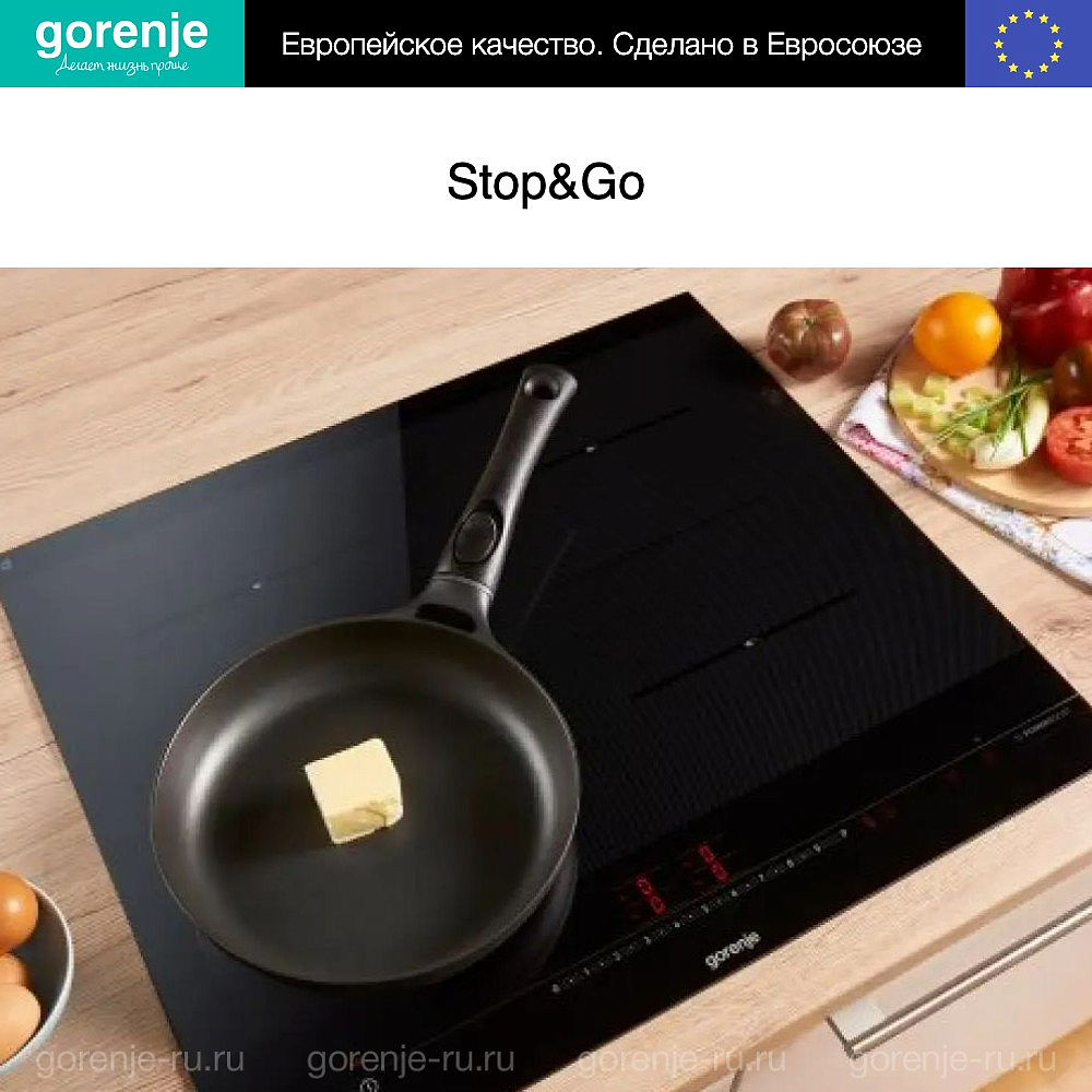 Функция Stop&Go носит ещё и другое название — функция паузы. Она позволяет во время приготовления пищи приостановить работу панели на 5 минут. Подача электроэнергии на конфорки при этом будет прекращена, но настройки сохранятся. Не стоит забывать, что данная зона всё ещё будет оставаться горячей. За это время можно протереть с плиты убежавшую жидкость или ответить на важный звонок.
