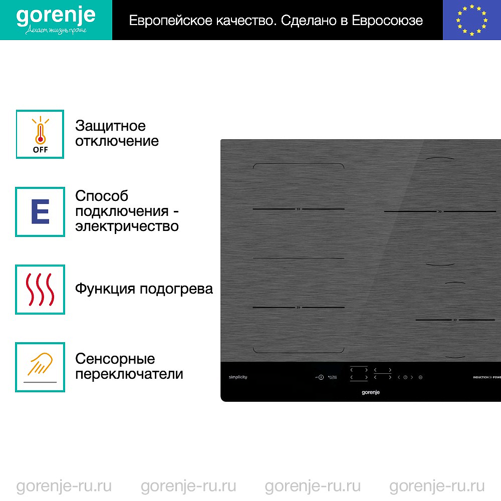 - Безопасность и продуманность: Индикаторы остаточного тепла, функция Stop&Go и защитное отключение повышают безопасность использования и удобство в управлении