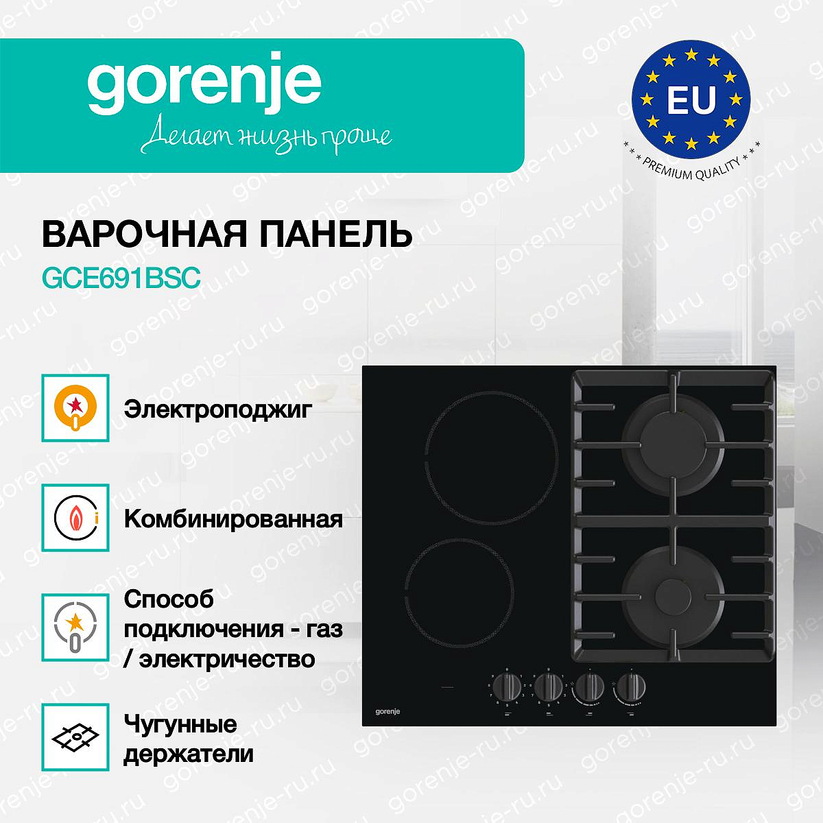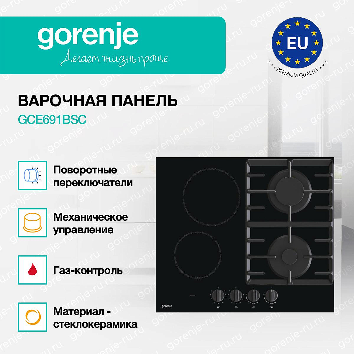 ** Все информационные материалы, представленные на Сайте, носят справочный характер и не могут в полной мере передавать достоверную информацию о свойствах, комплектации и характеристиках товара, включая цвета, размеры и формы. Фирма-производитель оставляет за собой право на внесение изменений в конструкцию, дизайн и комплектацию товара без предварительного уведомления. Перед оформлением Заказа Покупатель должен обратиться к Продавцу для уточнения свойств и характеристик Товара. Подробная информация о товаре указывается в инструкции и на упаковке товара. Используемое название в России: Горенье GCE691BSC