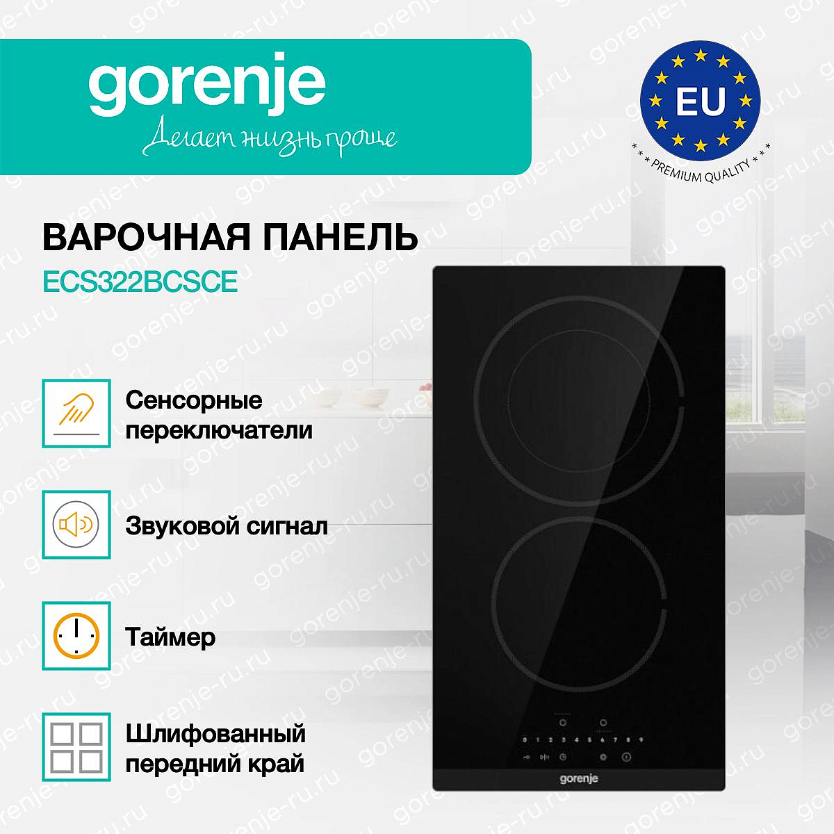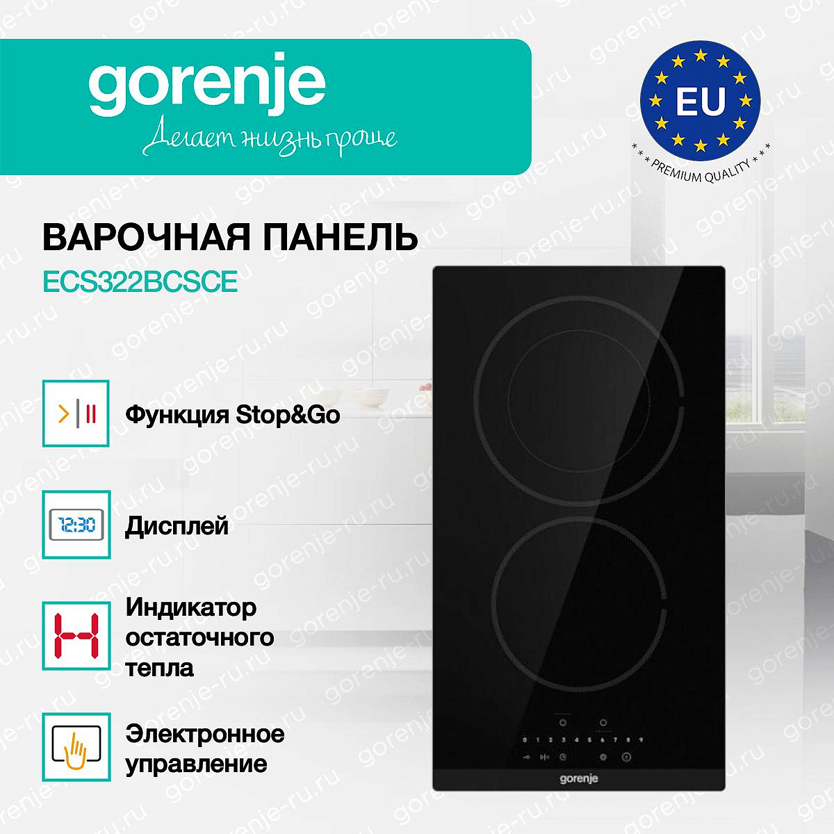 ** Все информационные материалы, представленные на Сайте, носят справочный характер и не могут в полной мере передавать достоверную информацию о свойствах, комплектации и характеристиках товара, включая цвета, размеры и формы. Фирма-производитель оставляет за собой право на внесение изменений в конструкцию, дизайн и комплектацию товара без предварительного уведомления. Перед оформлением Заказа Покупатель должен обратиться к Продавцу для уточнения свойств и характеристик Товара. Подробная информация о товаре указывается в инструкции и на упаковке товара. Используемое название в России: Горенье ECS322BCSCE